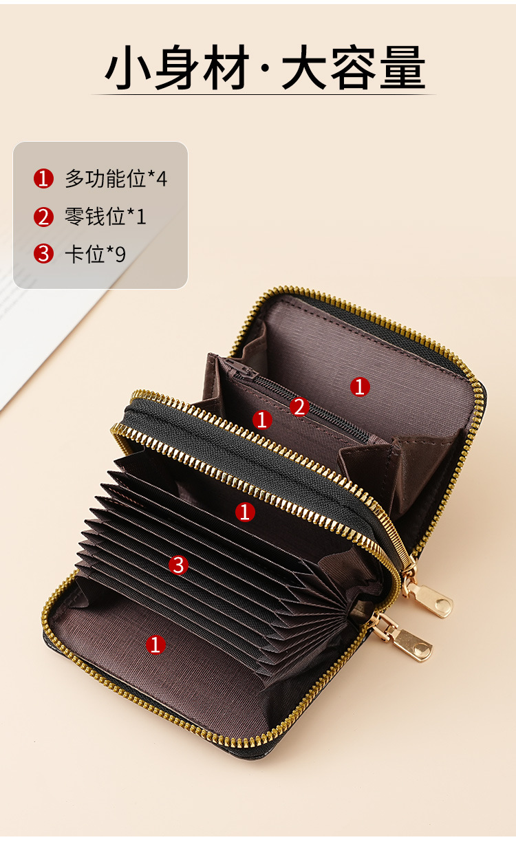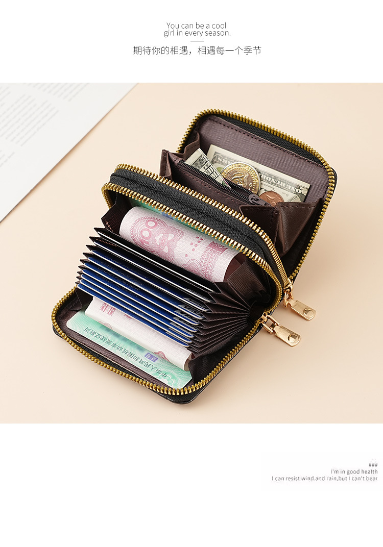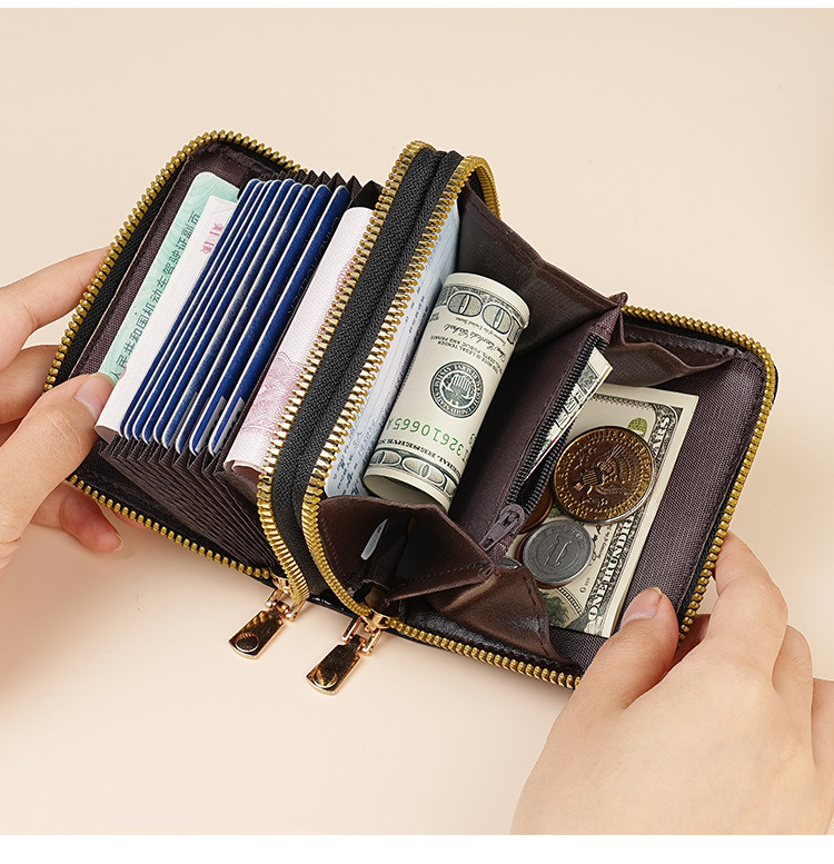 Nuevo órgano doble cremallera bolsa de tarjeta de moda europea y americana multi-tarjeta de gran capacidad de cremallera cero cartera femenina transfronteriza suministro