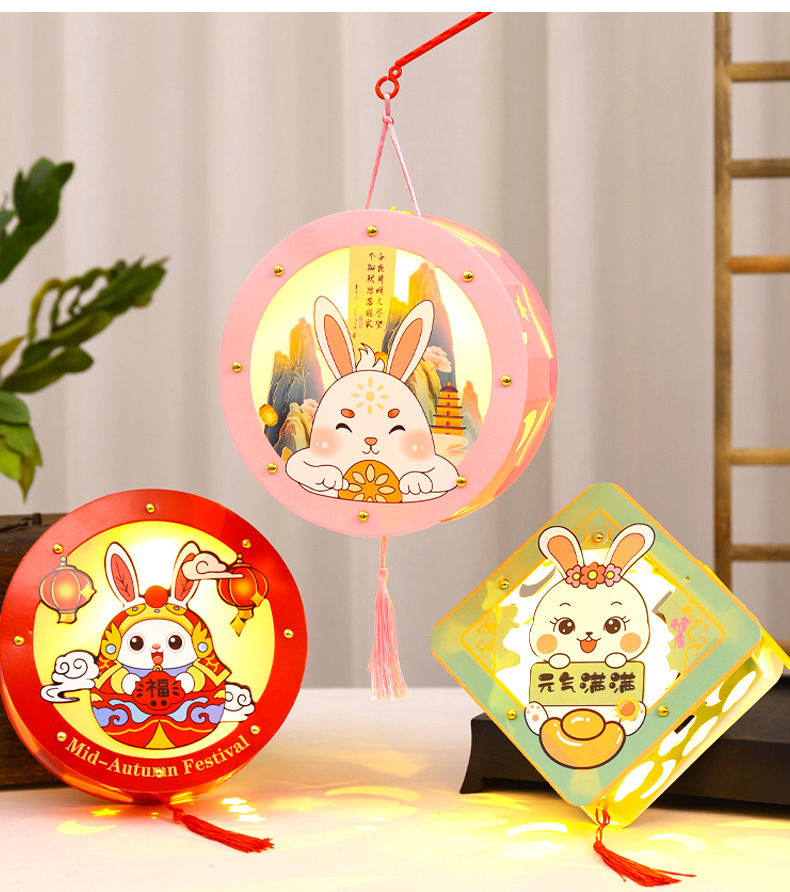 Festival del medio otoño linterna proyección caminando caballo linterna kindergarten niños lámpara de conejo portátil hecho a mano DIY paquete de material de producción