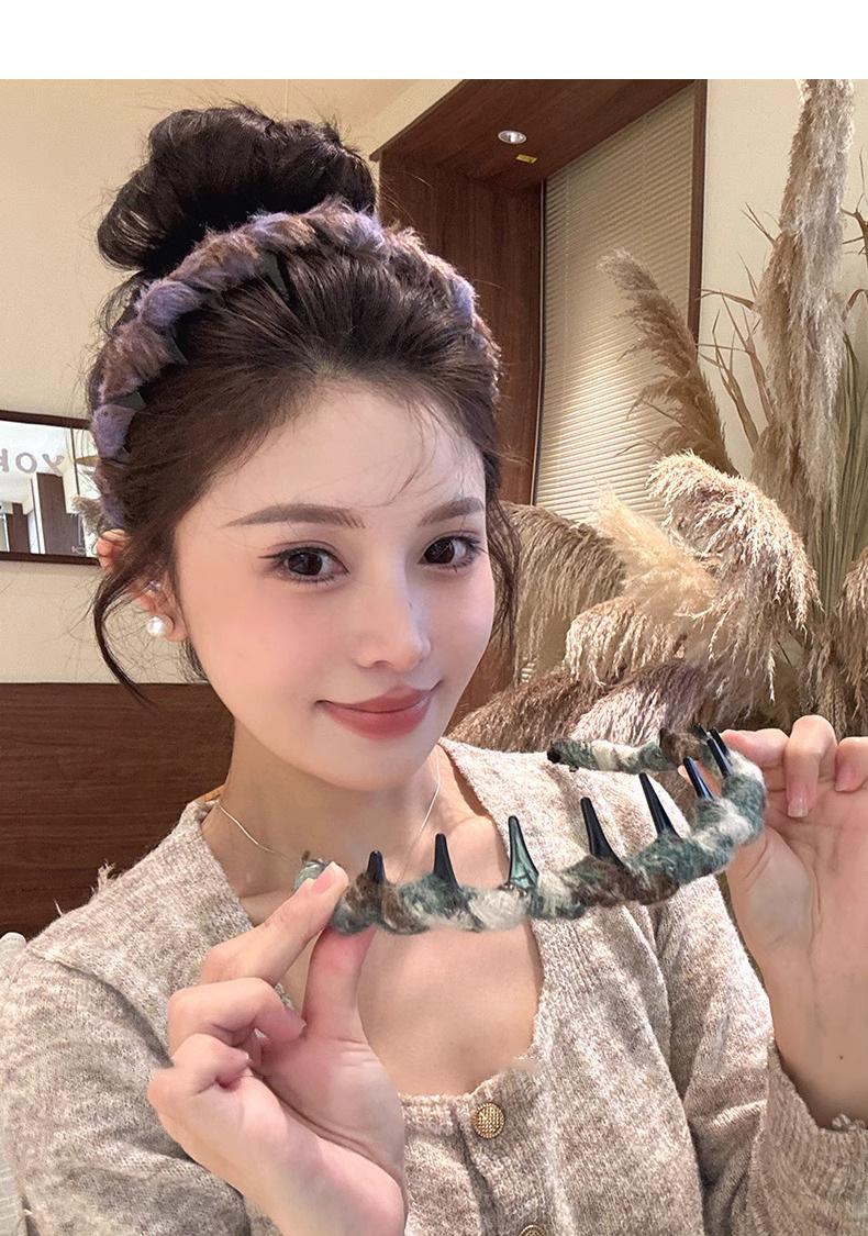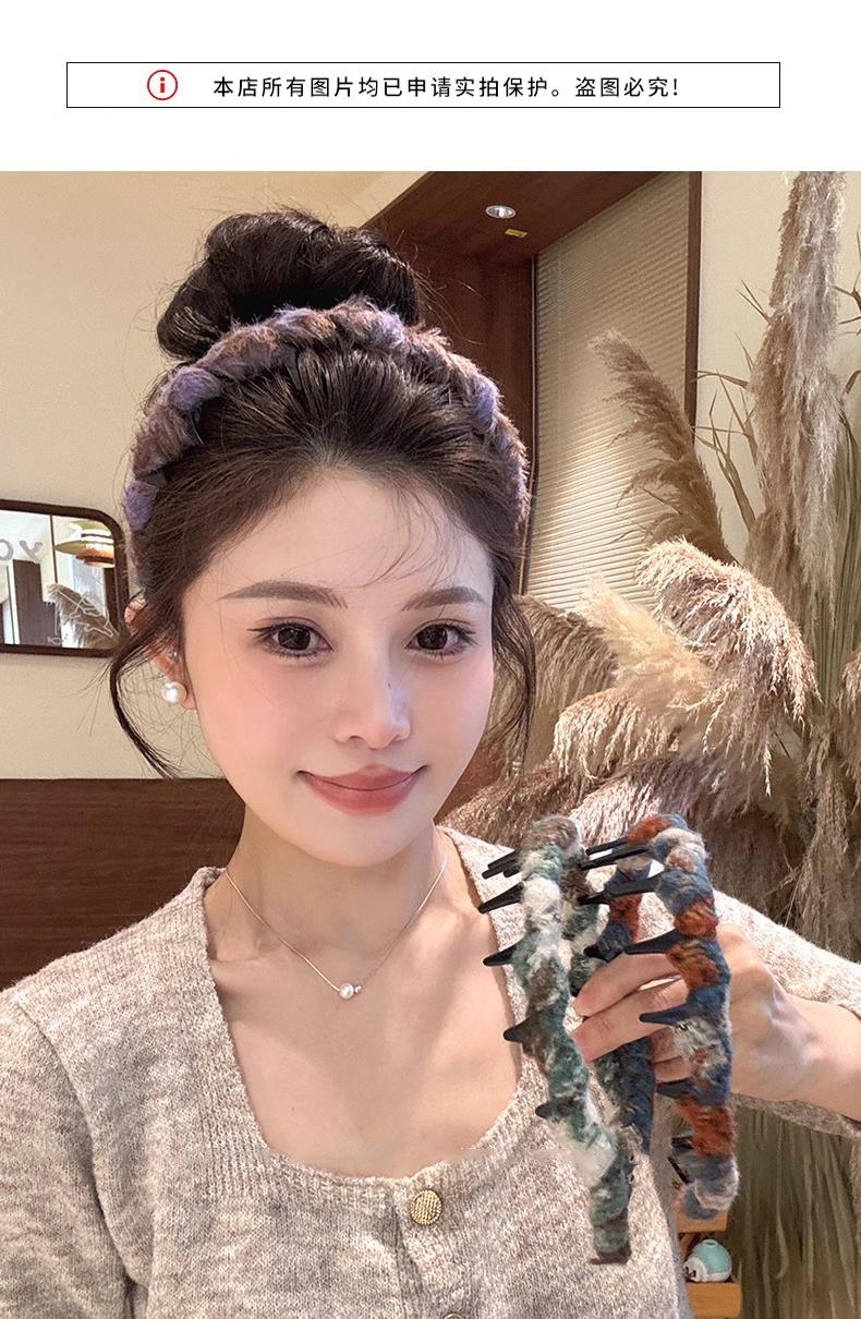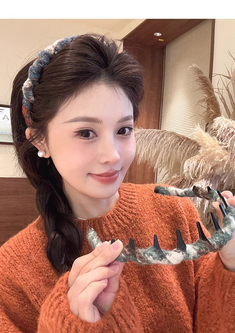 Otoño y invierno de lana de color para mujeres cráneo alto con dientes antideslizante bandeja de cabeza de alta sensación de lavado de la cara de presión de cabello tarjeta de cabello toque