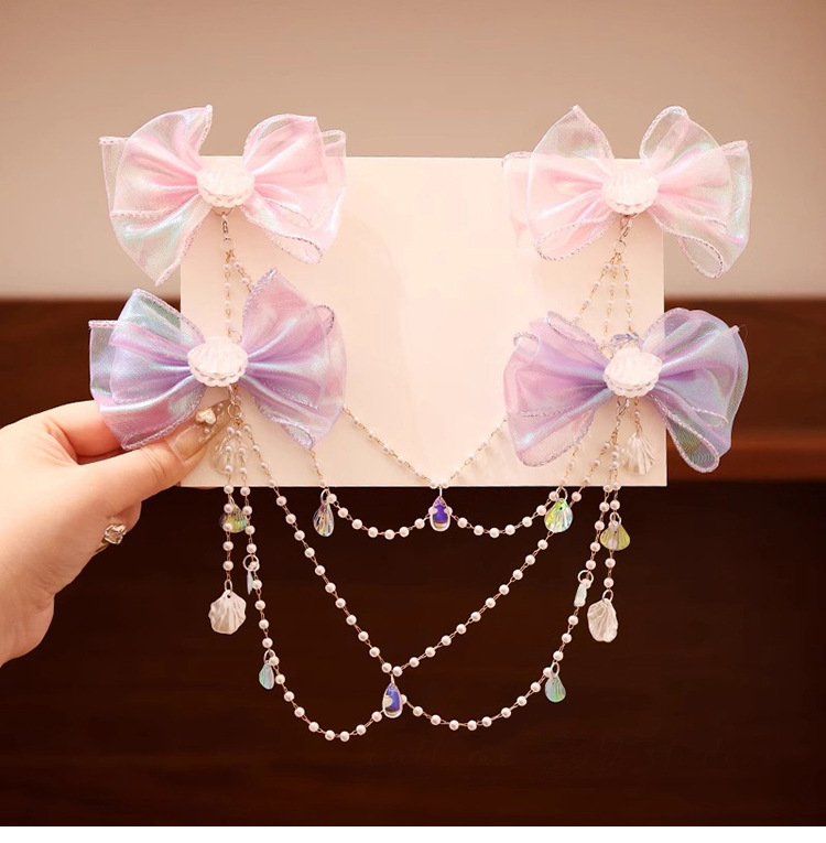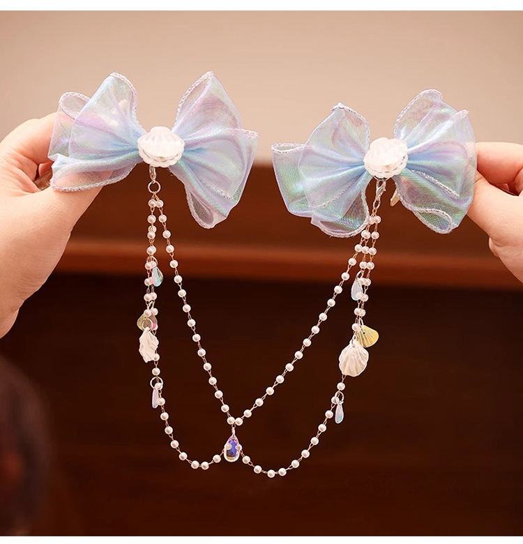 Niños super inmortal arco frente cadena perla pellizco de perla niñas joyas de cabello de sirena niñas joyas de cabello