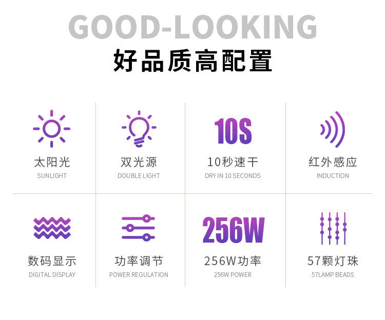 Nueva Lámpara de Uñas de 256W, Máquina de Uñas de Alta Potencia, Lámpara de Fototerapia, Secado Rápido de Esmalte de Uñas en Gel, Sensor Inteligente, Máquina de Fototerapia Transfronteriza