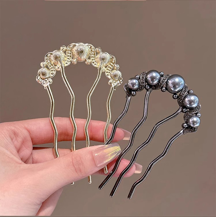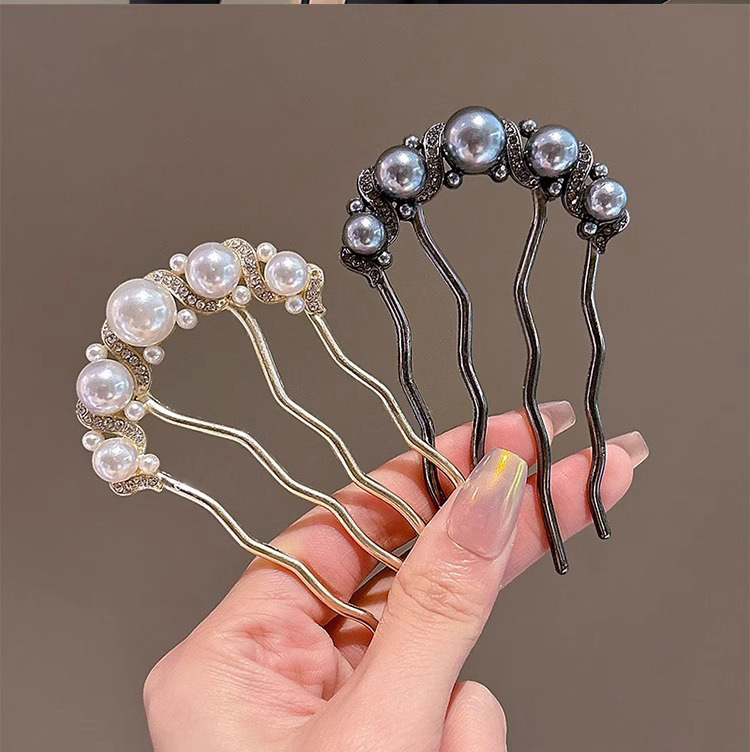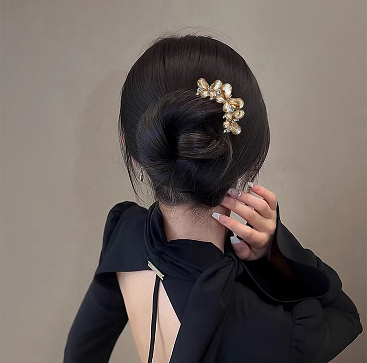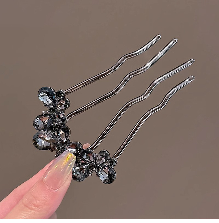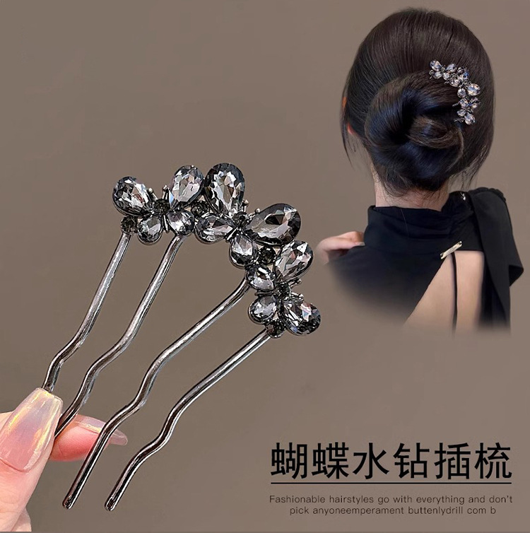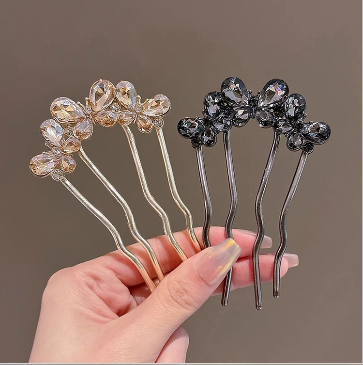 Un alto nivel de sensación de lujo ligero diamante mariposa peine de cabello tipo U de cuatro dientes enchufado peine de cabello temperamento bola de cabeza broca de cabello artefacto mágico