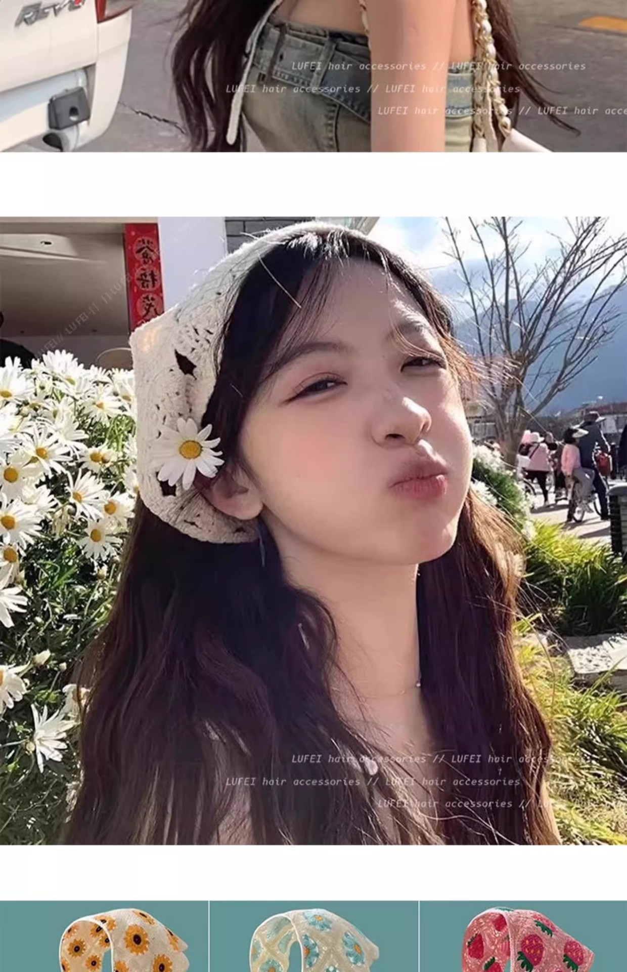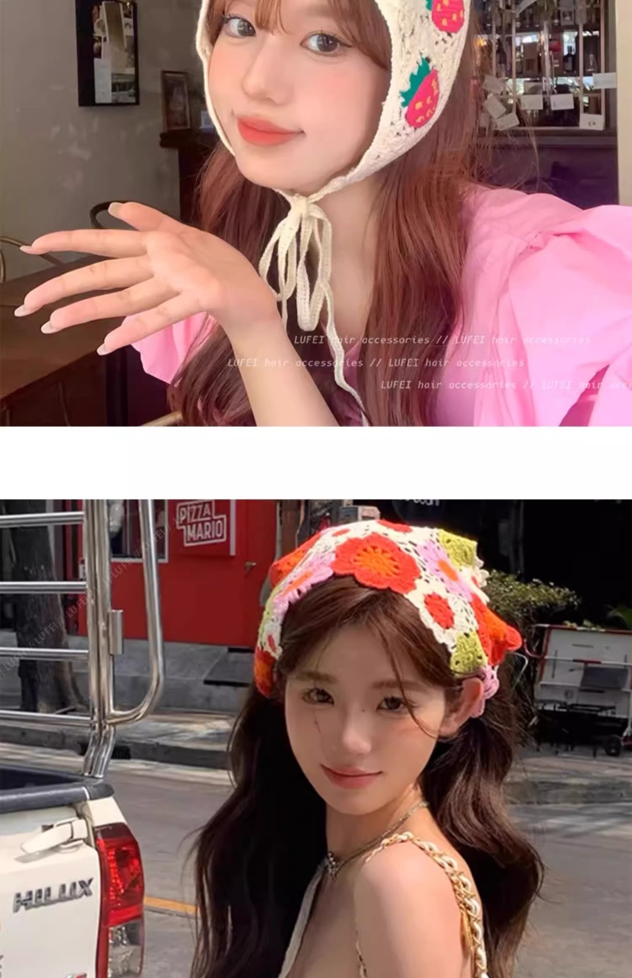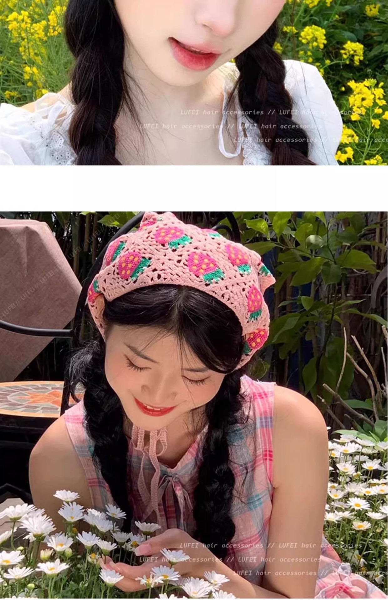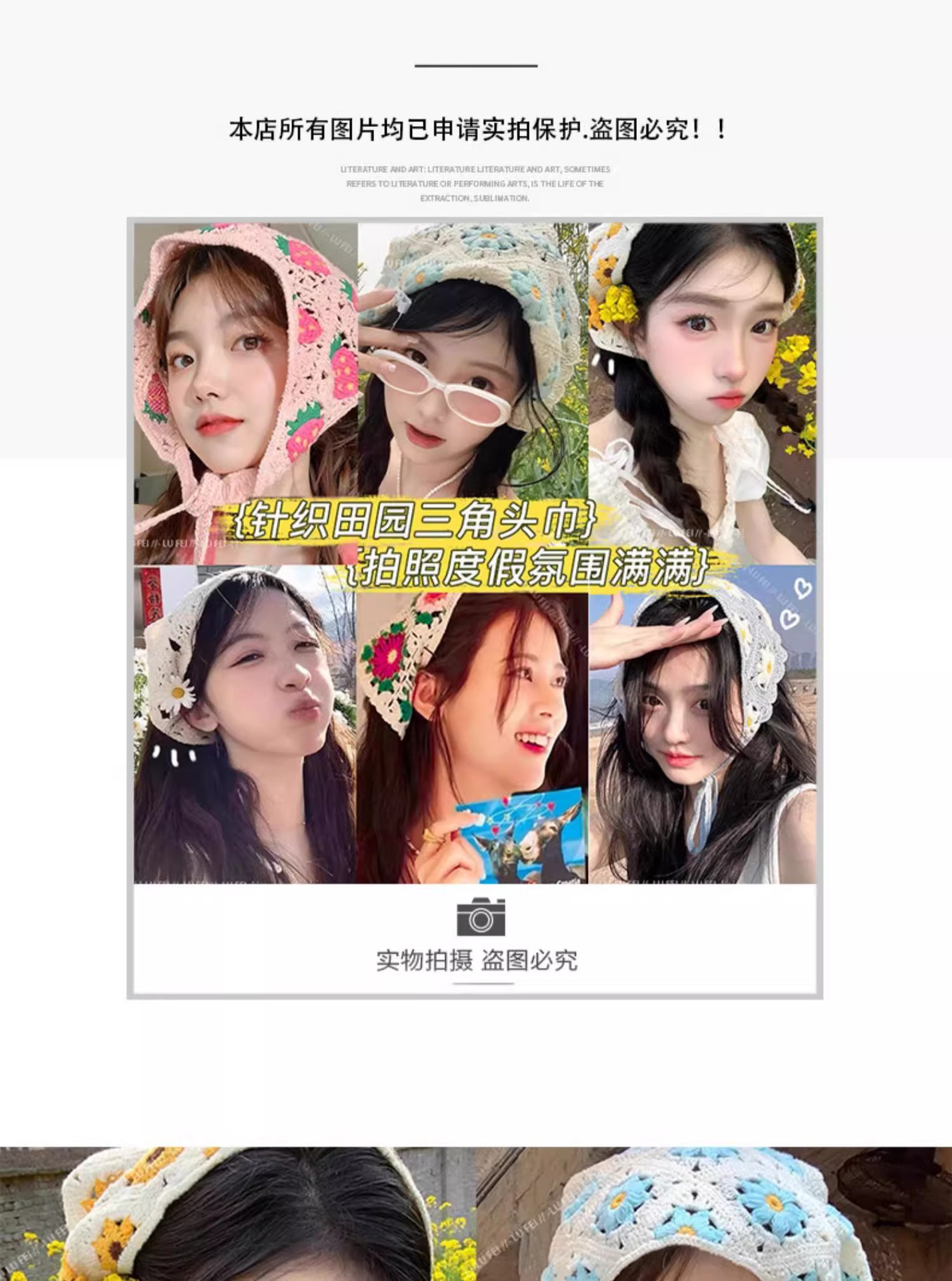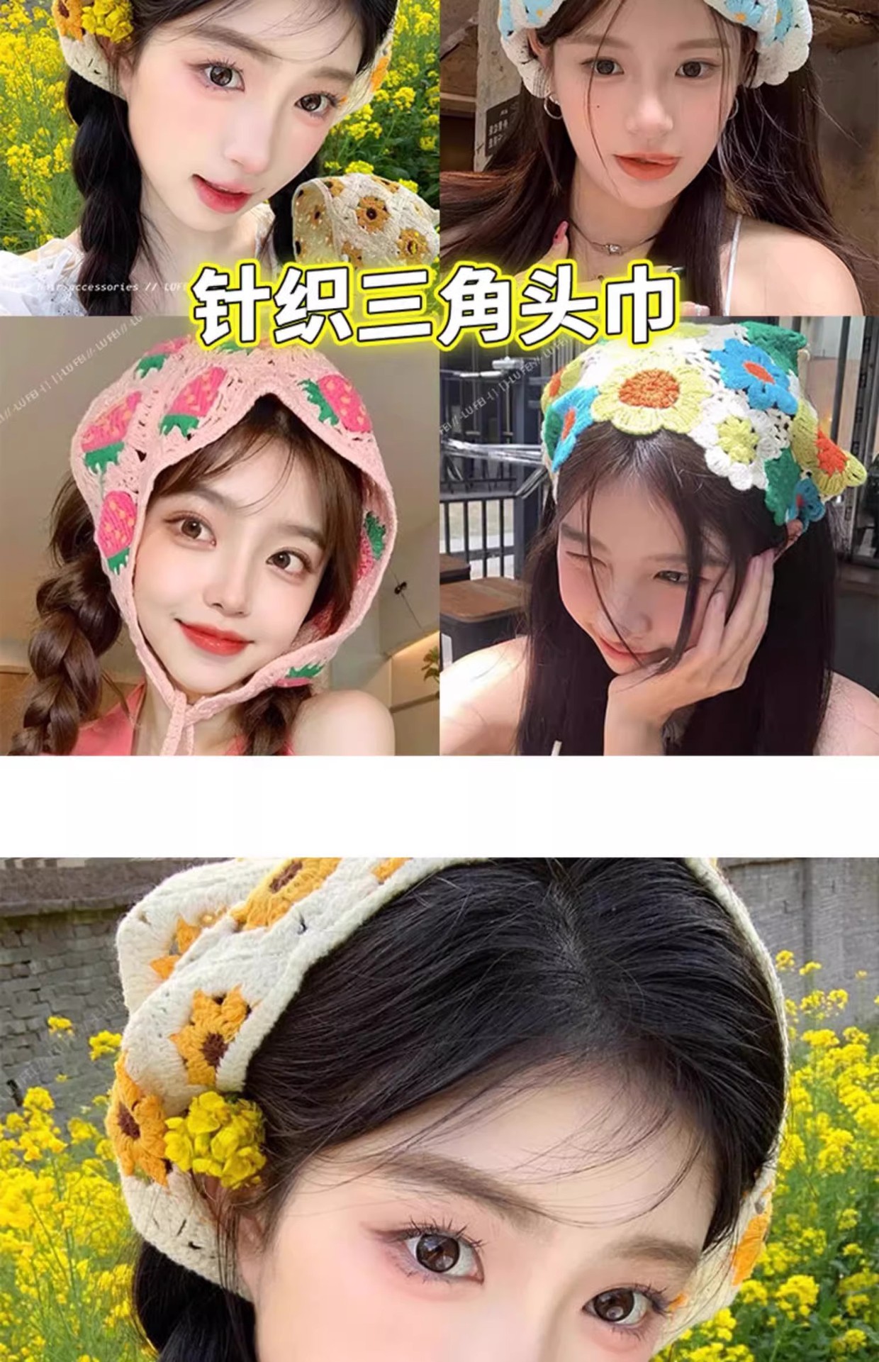 Zhao Zhaoyi el mismo pañuelo de punto para viajar dulces pañuelos de triángulo de viento idílico en línea caliente correa de cabello tocado cuadrado