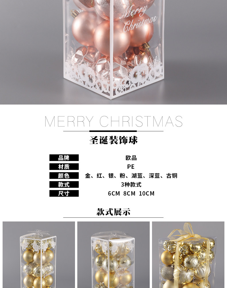 Caja de regalo de la bola de luz galvanoplastia de Navidad árbol de Navidad colgante Bola de polvo bola mate decoración de techo de Navidad