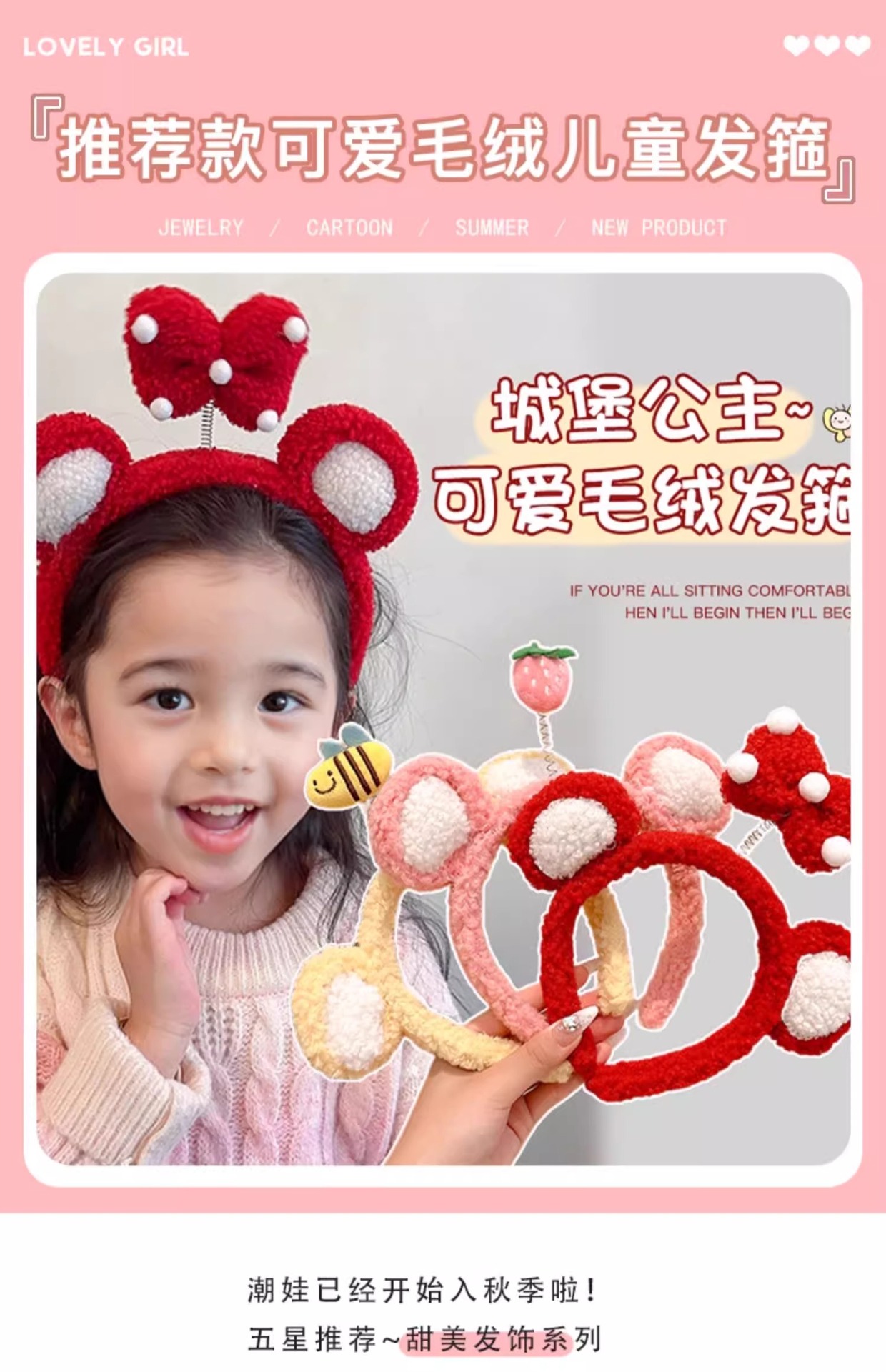 Otoño y invierno lindos niños peluche bandas de cabello 2024 nuevas niñas arco dulce prensado bandas de cabello no estrangulación