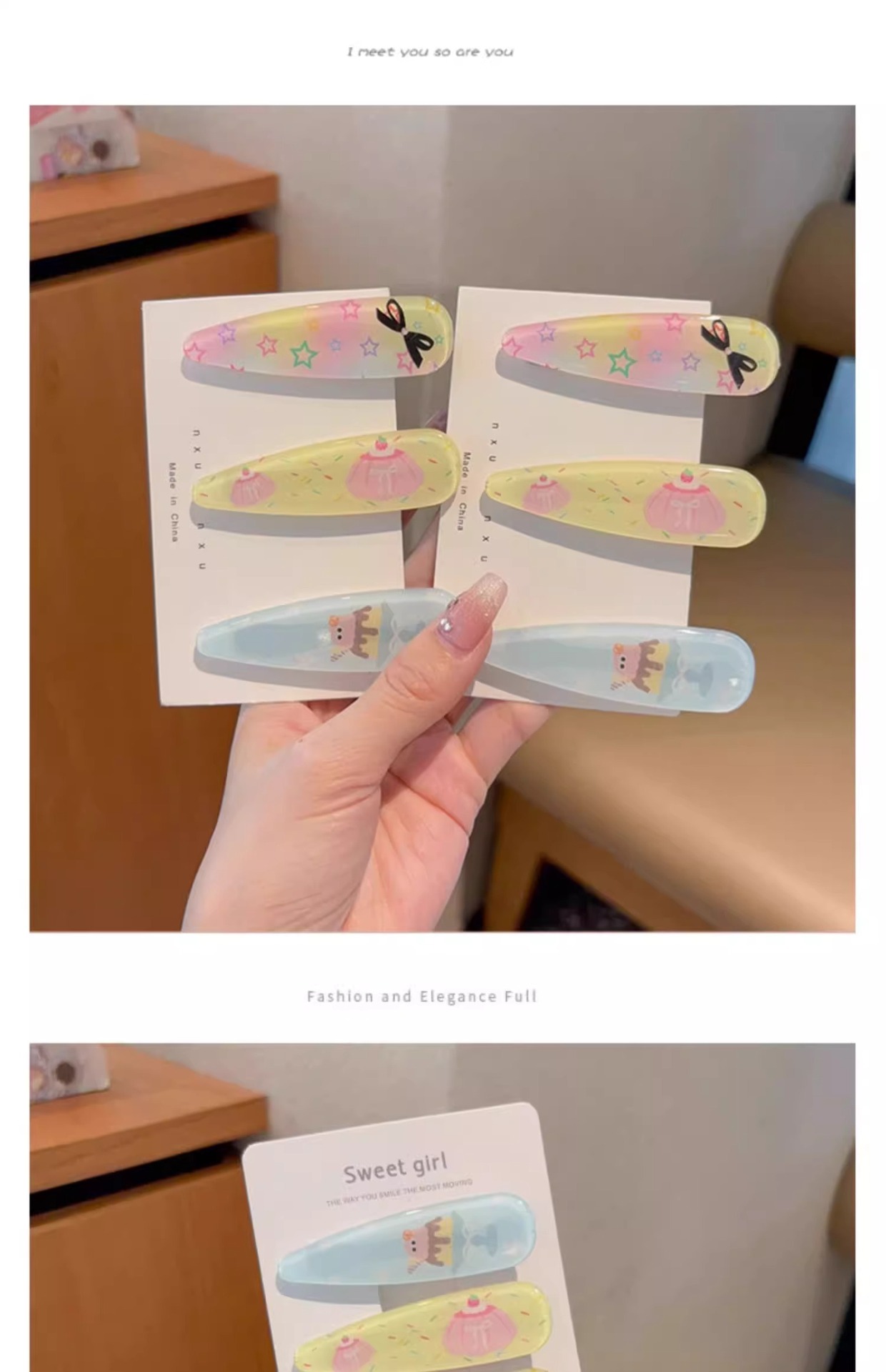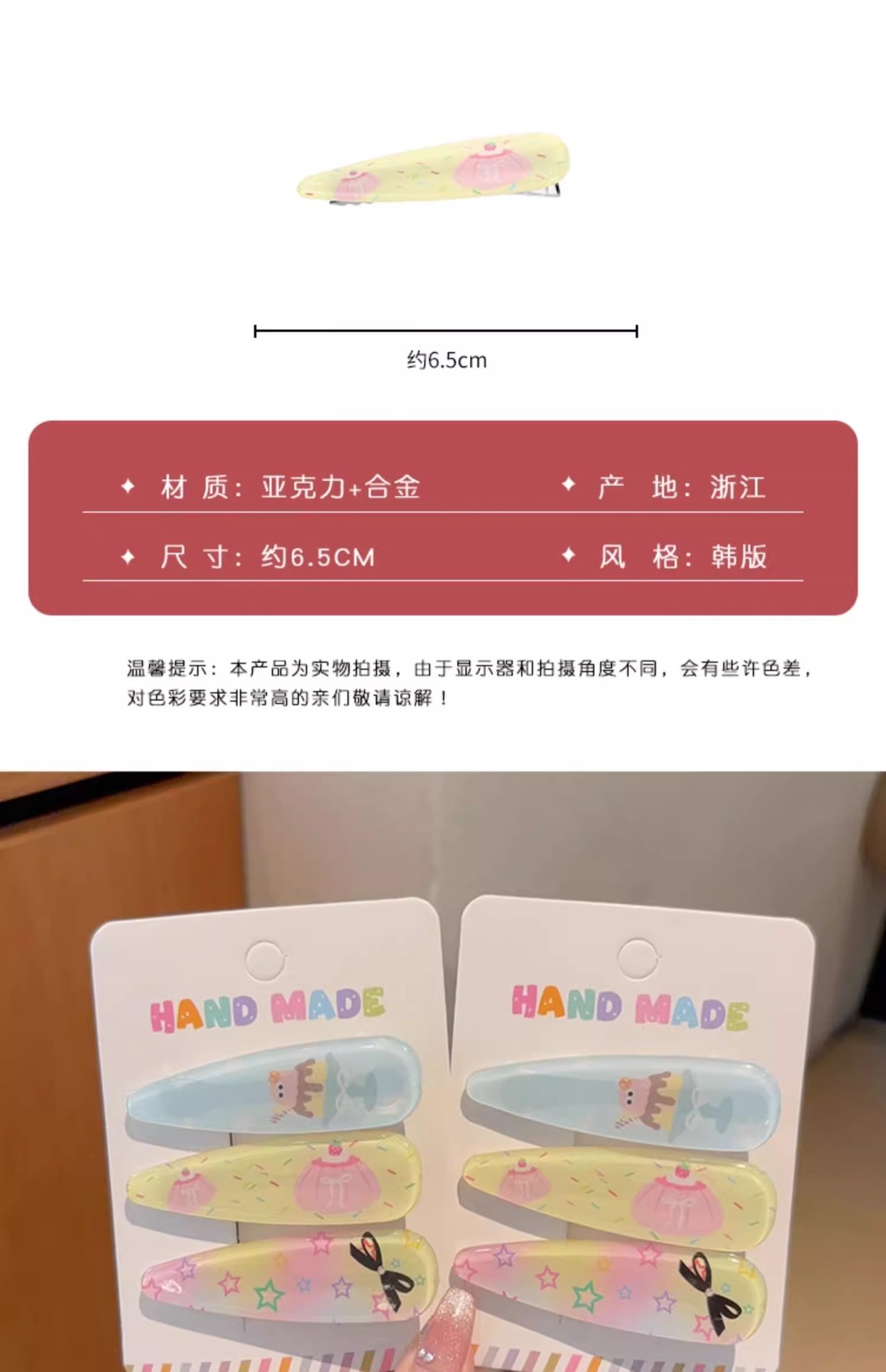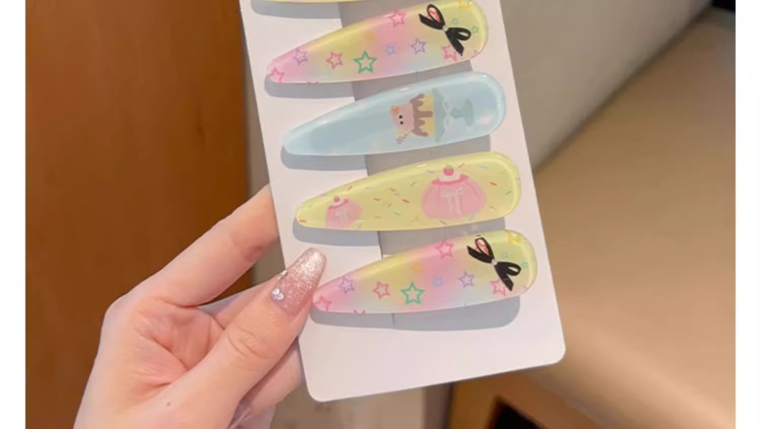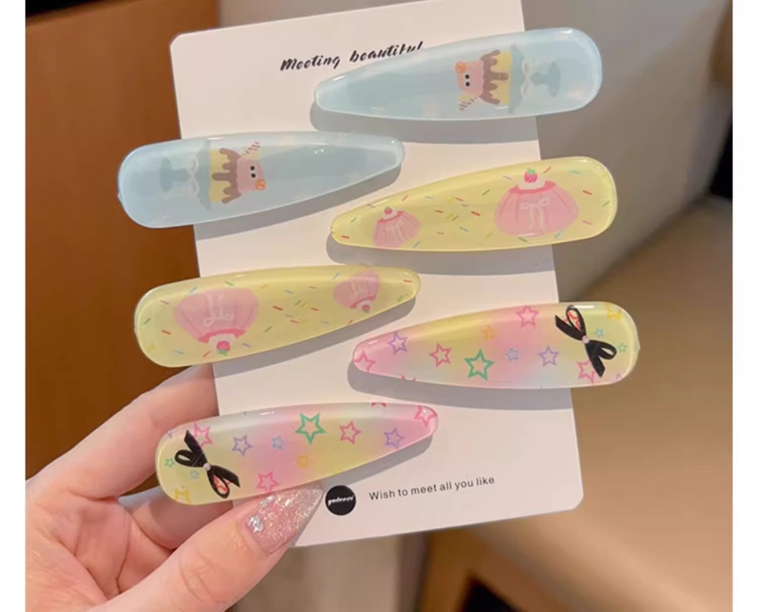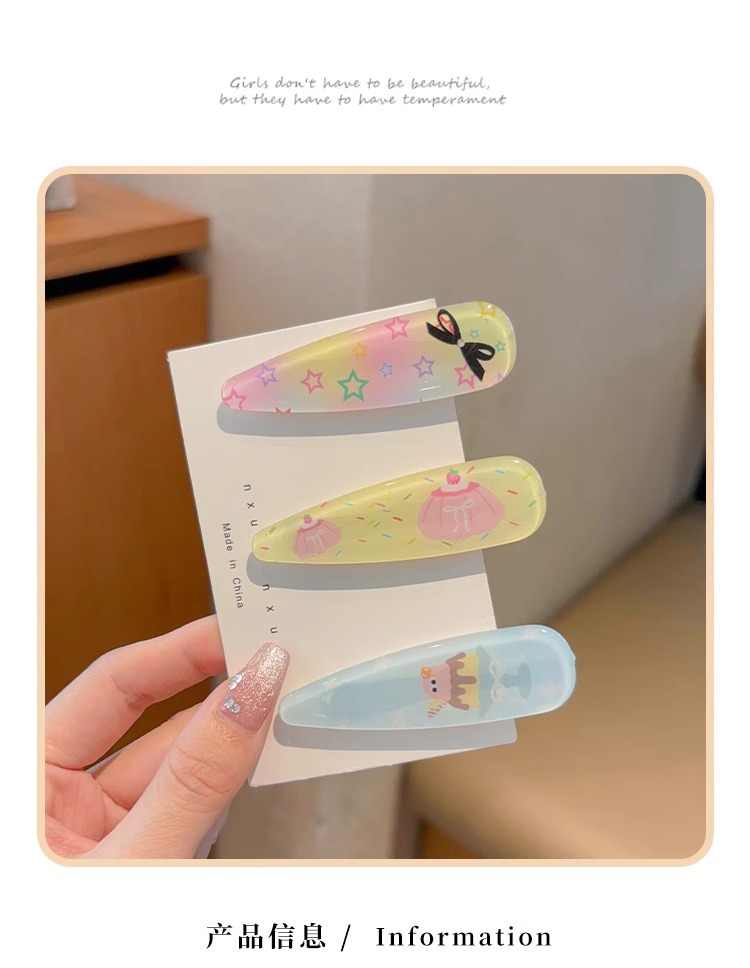 Clip de pestaña de dibujos animados cremosos niños lindos frente rotos tarjeta de cabello tocado 2024 nuevo clip de boca de pato lateral para niñas