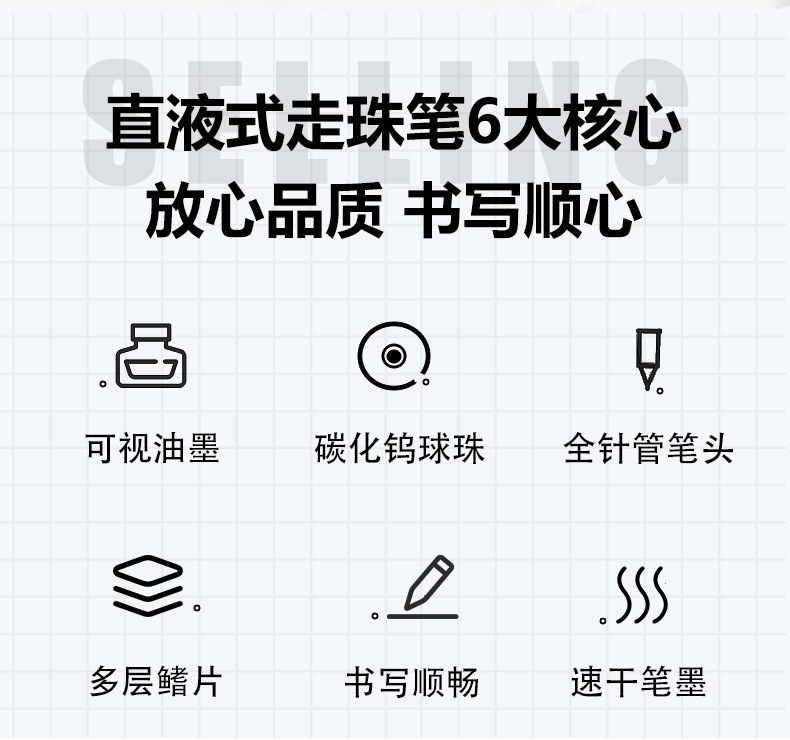 Disparar sonido explosivo tipo líquido directo lápiz neutro rápido seco de gran capacidad bolígrafo 0.5 estudiantes de escuela secundaria con pincel de aguja