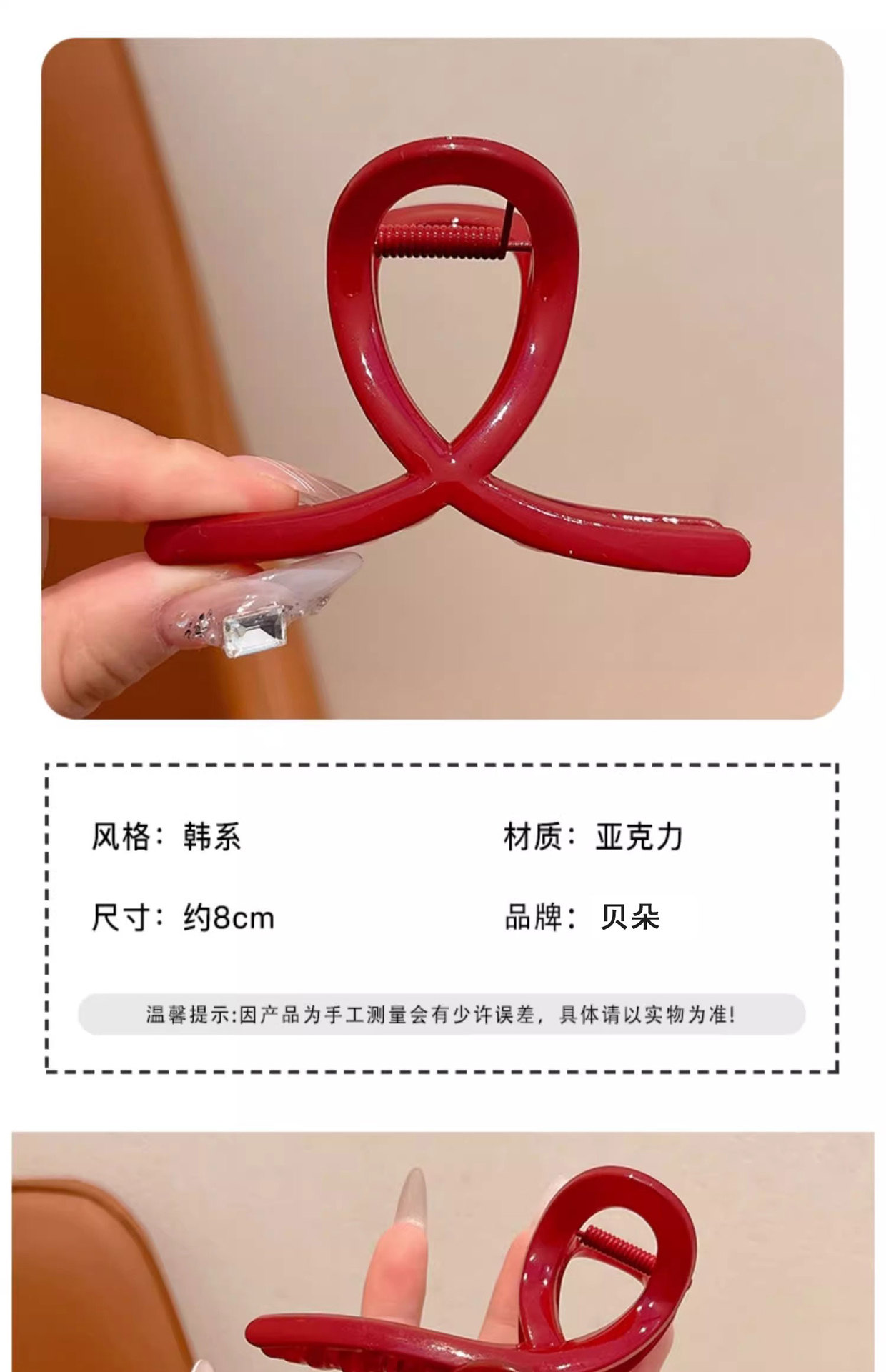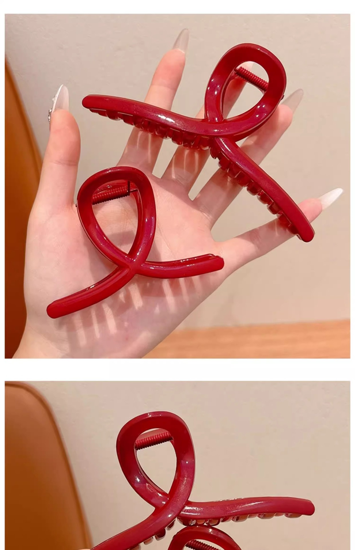 | Color | 1 clip rojo 8cm, 2 clip rojo 11cm, 3 clip rojo 13cm, 4 clip rojo vino 13cm |