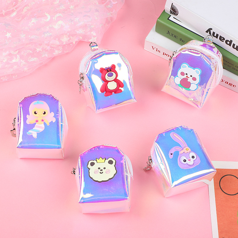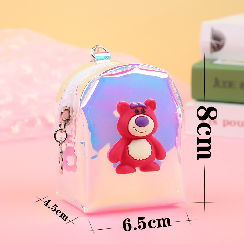 Nueva fresa Oso de los niños cartera transparente estudiante monedero portátil mini mochila dibujos animados lindo pequeña cartera