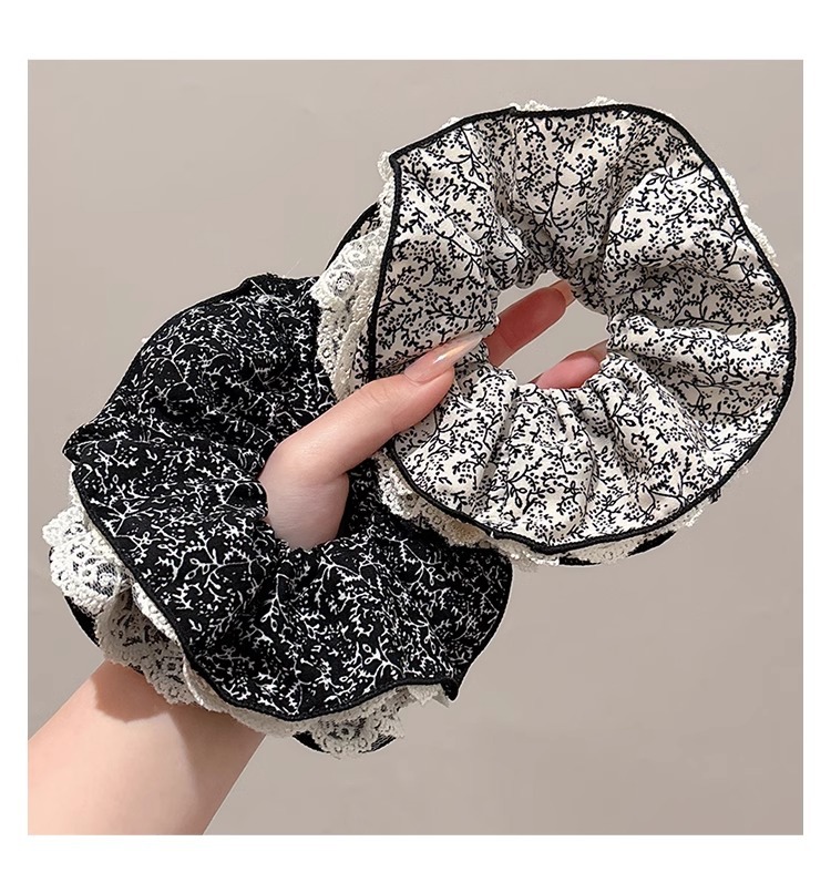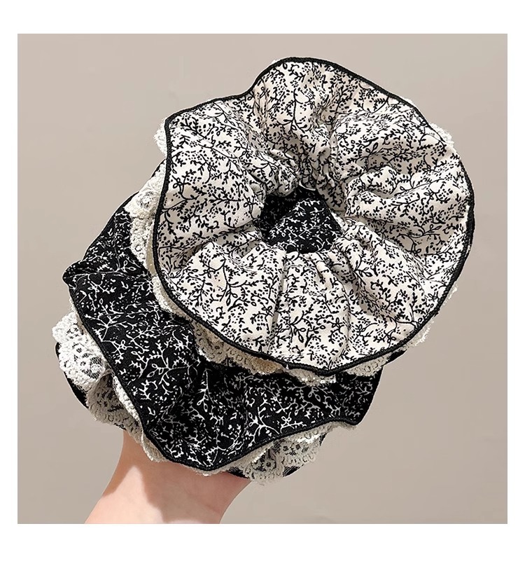 encaje retro flor de doble capa de anillo de cabello de intestino grueso temperamento femenino baja cuerda de cabello bola de cabello de cabello correa de correa