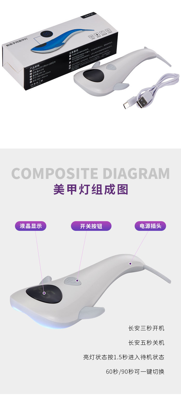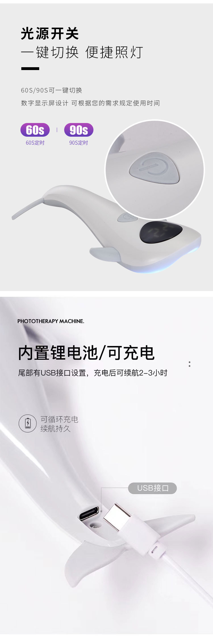 Lámpara de uñas portátil con forma de ballena, recargable por USB, mini lámpara de fototerapia portátil, lámpara de curado de gel para esmalte de uñas, estilo celebridad de internet, lámpara de secado.