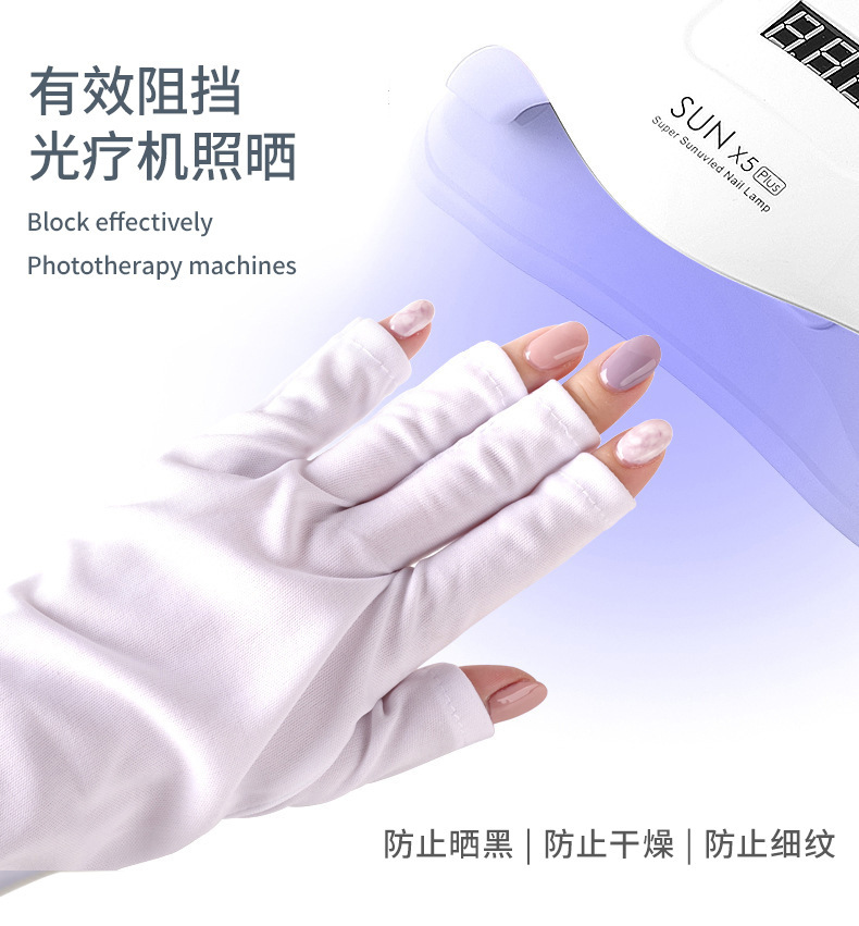 Guantes de uñas máquina de fototerapia a prueba de rayos UV guantes de belleza expuestos al dedo largo corto protector solar uñas guantes especiales a prueba de negro