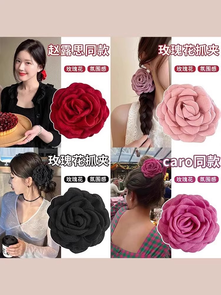 Flores rojas agarrando clips secos rosa clips flores 2025 nuevas vacaciones en el mar tiburón clips para el cabello
