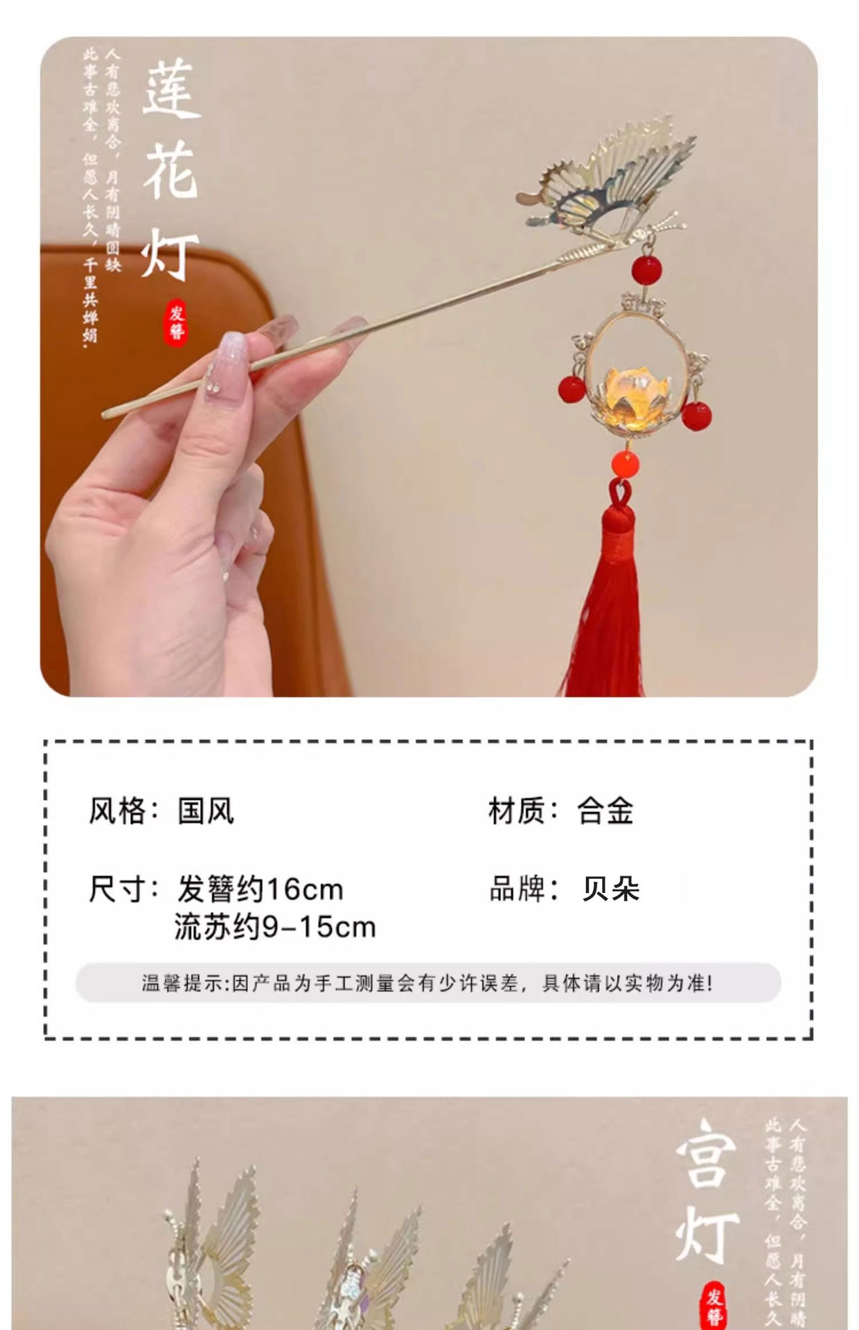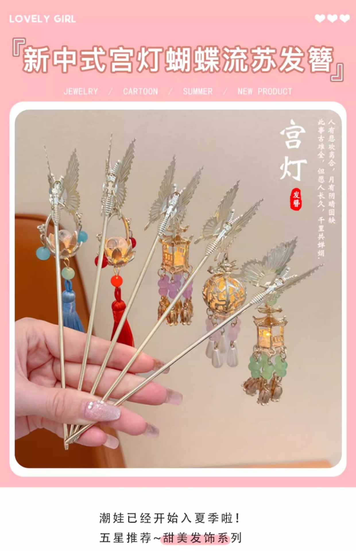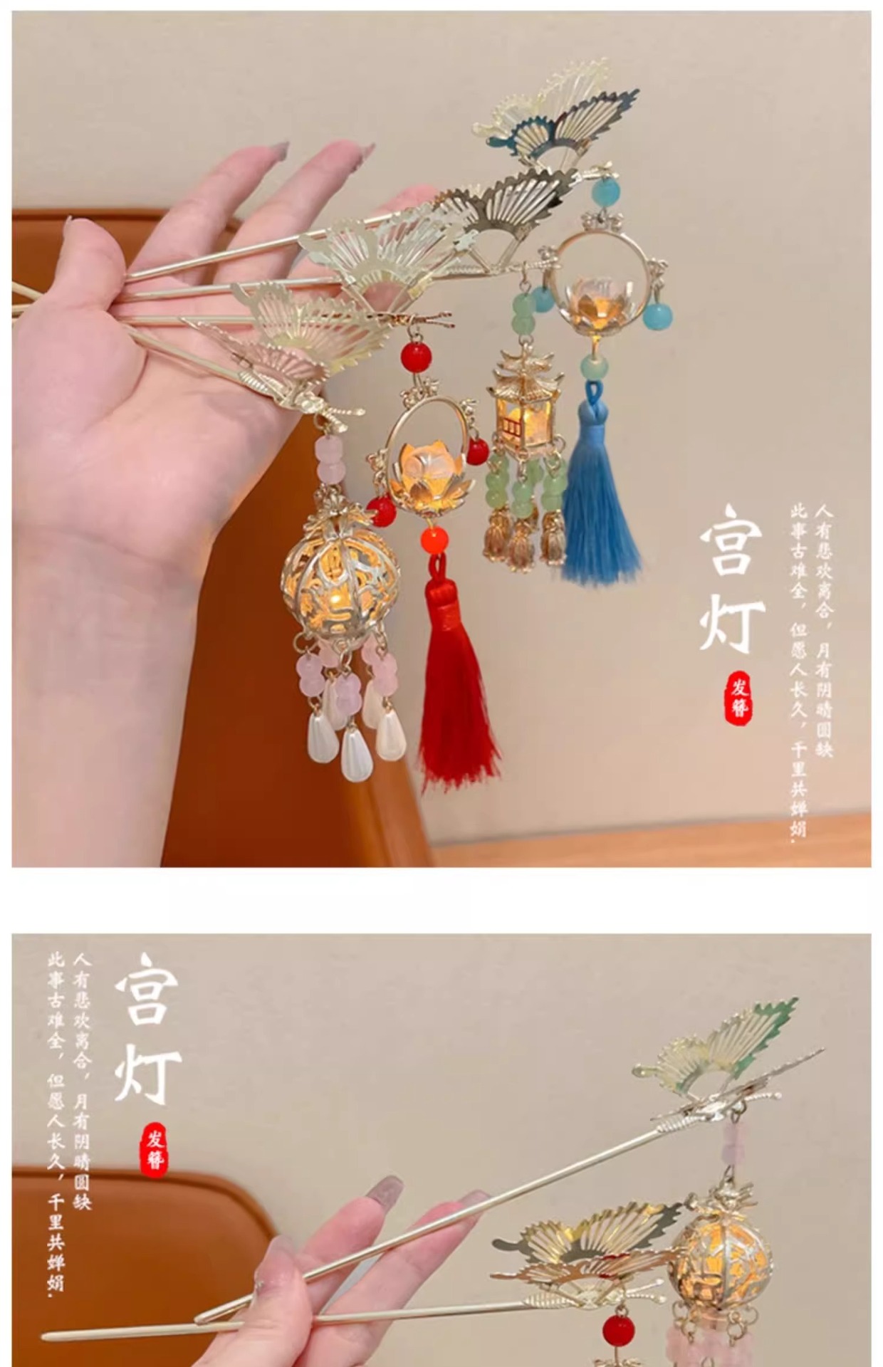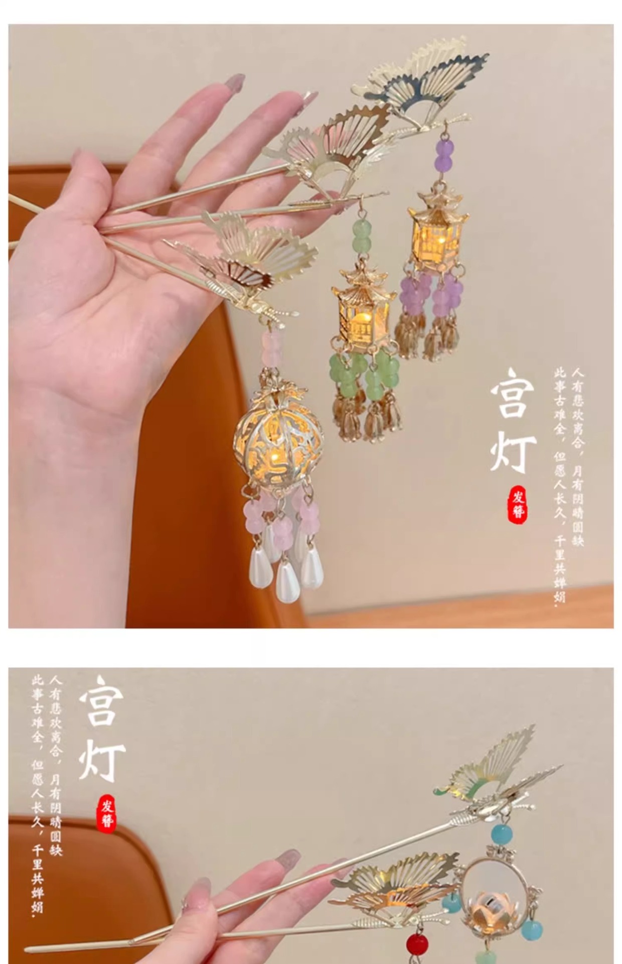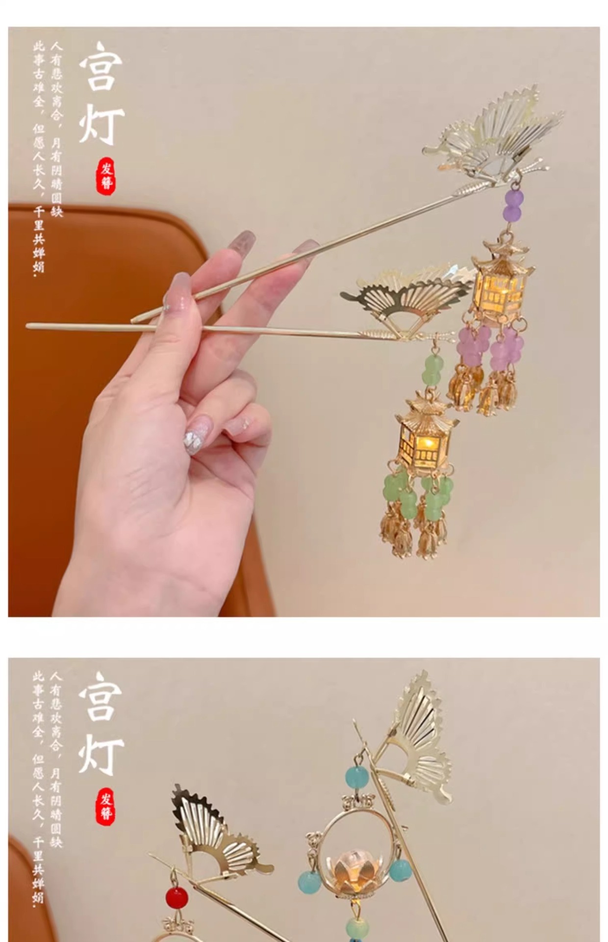 Festival del Medio Otoño Palacio lámpara clip de cabello para niños estilo antiguo mariposa clip de cabello 2024 nuevo estilo de niñas clip de cabello de alta calidad