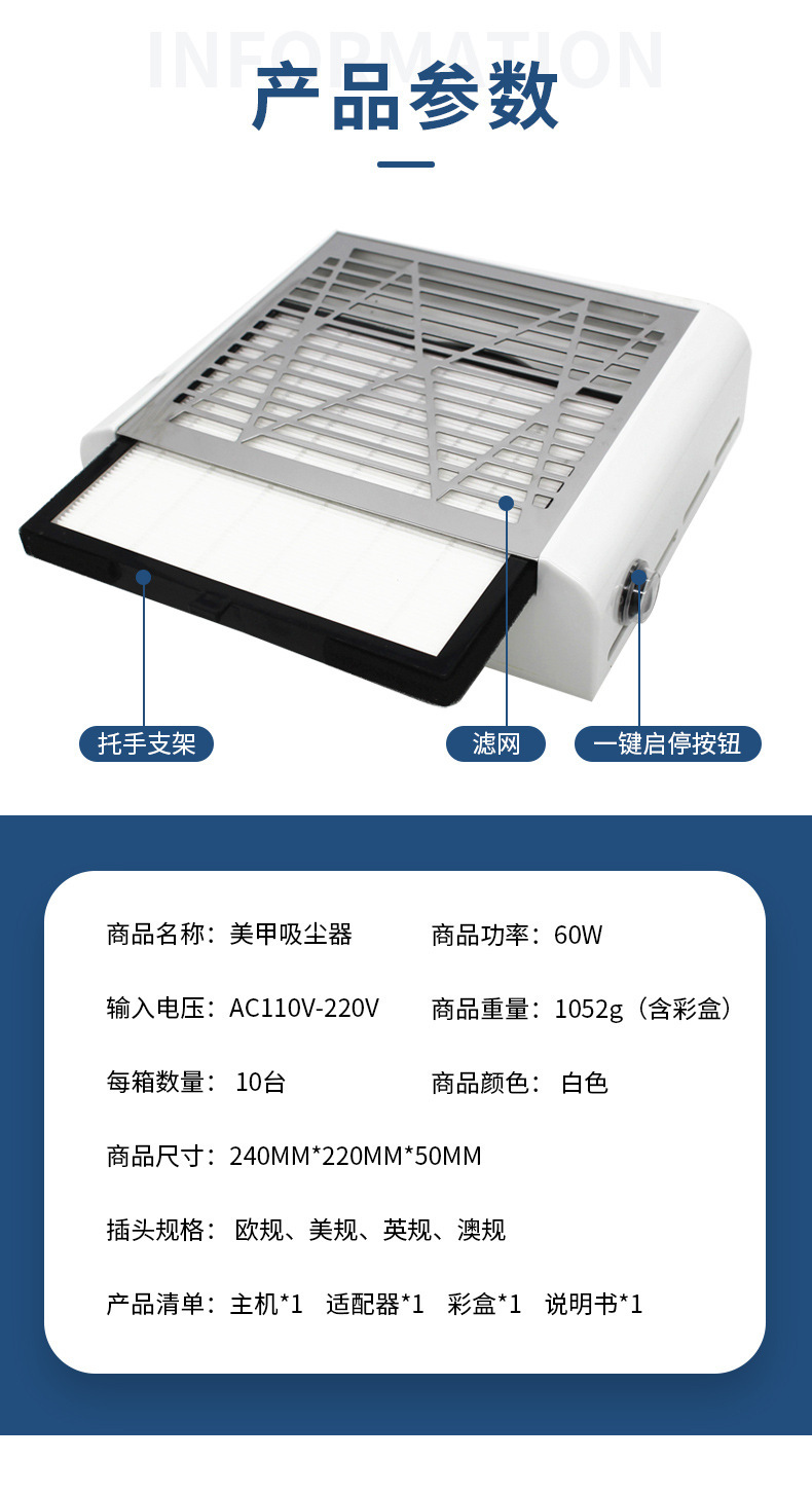 Aspirador de uñas transfronterizo Máquina de polvo de uñas japonesa 80w filtro de alta potencia para uñas aspiradoras extraídas