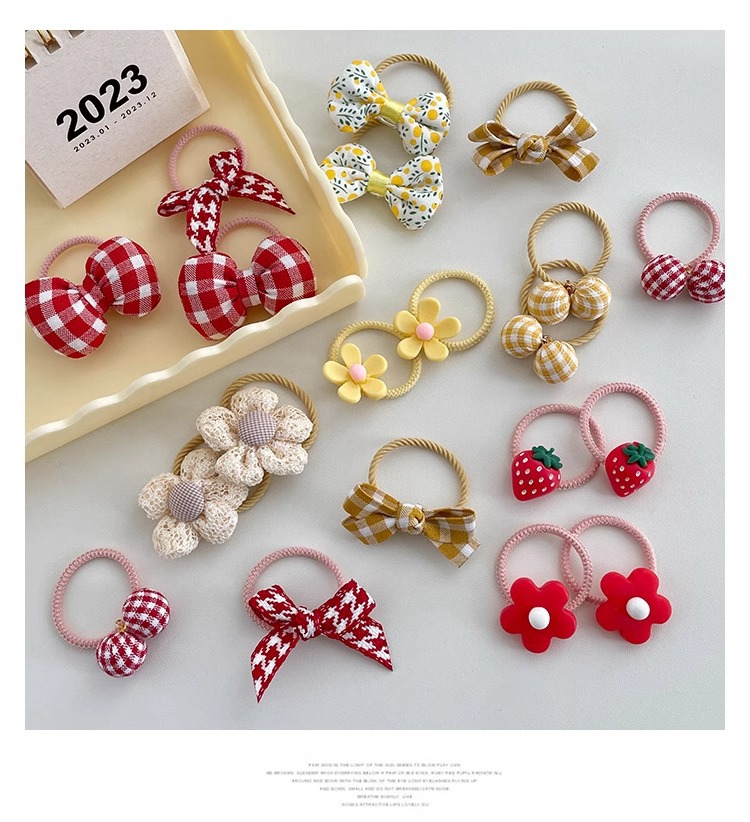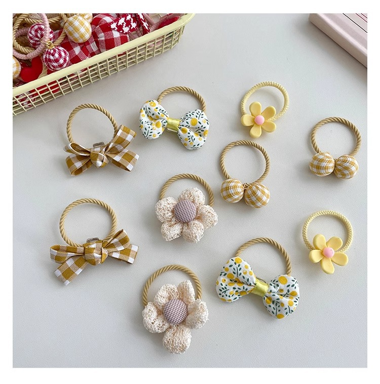 Bebé atado pequeño anillo de cabello no lastimar el cabello pequeña banda de goma de verano para niños de flores trituradas mariposa atada joyería de cabello de cola de caballo