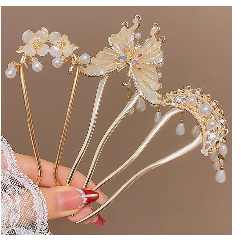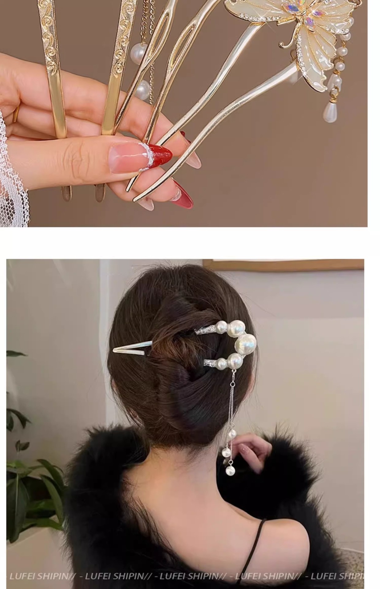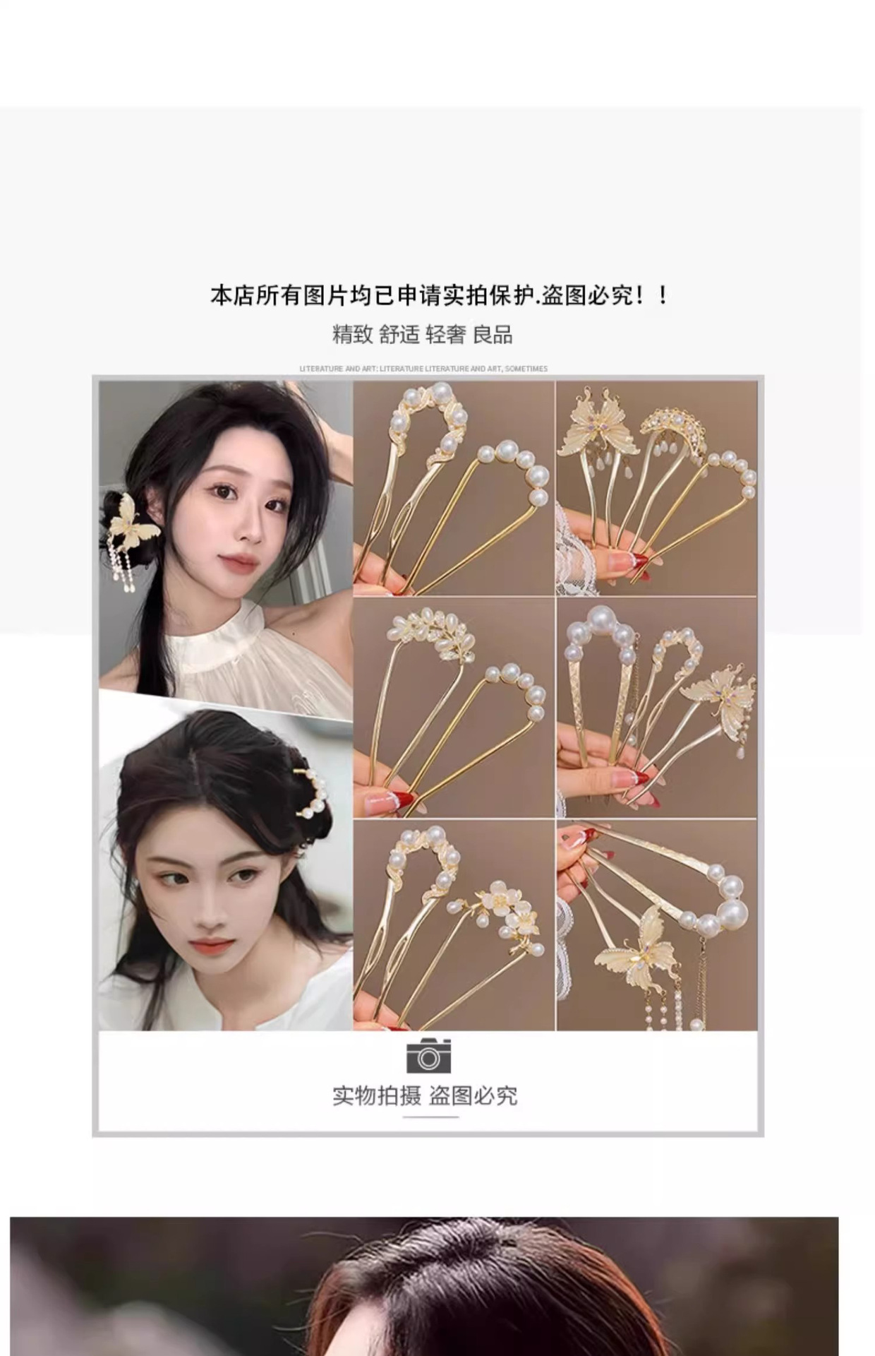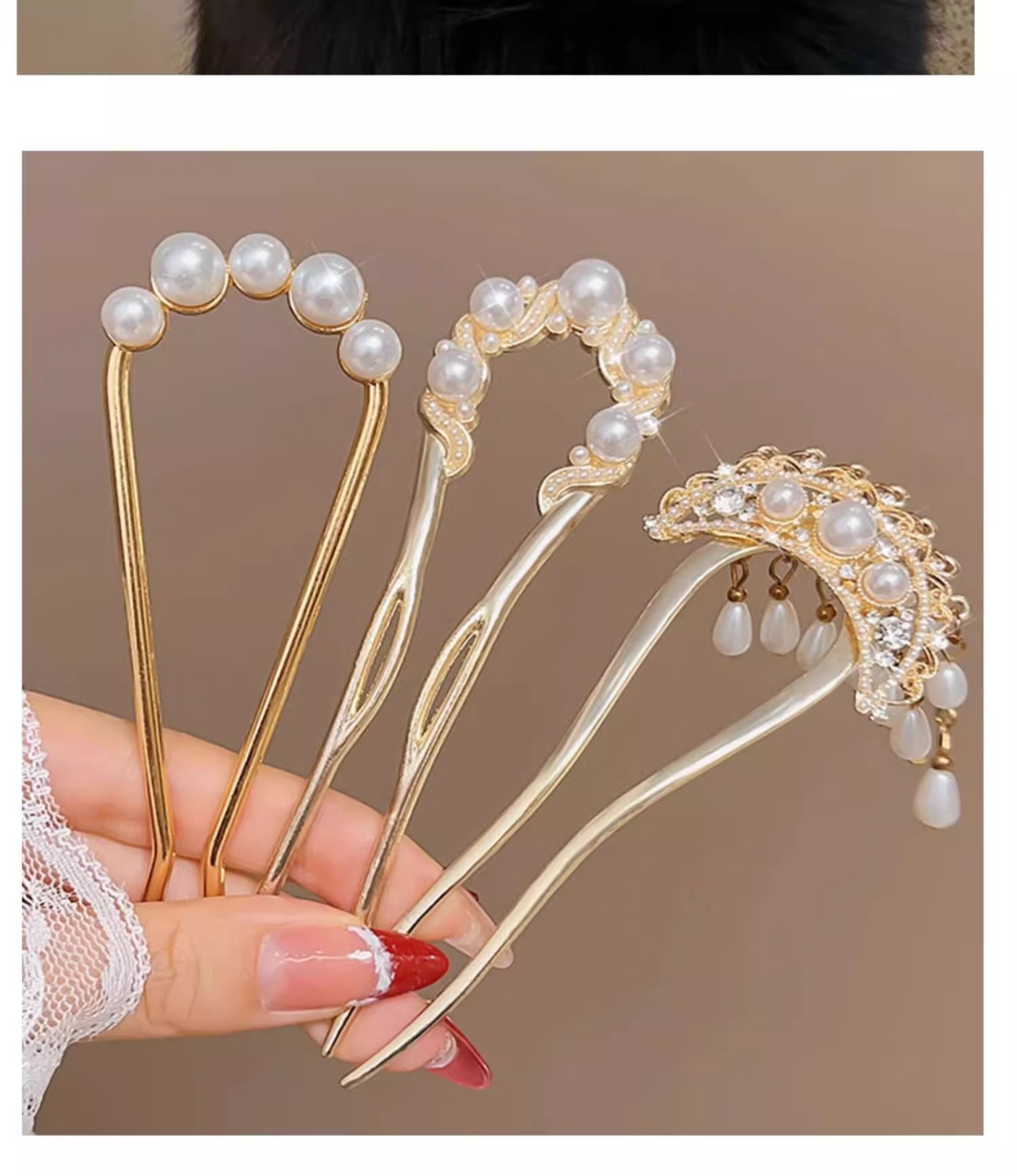 Nuevo estilo antiguo chino en forma de U pinzas de cabello de mujer cabeza de bola de cabeza cabeza artefacto de cabello de borde paso de cabello de cabello de tocado