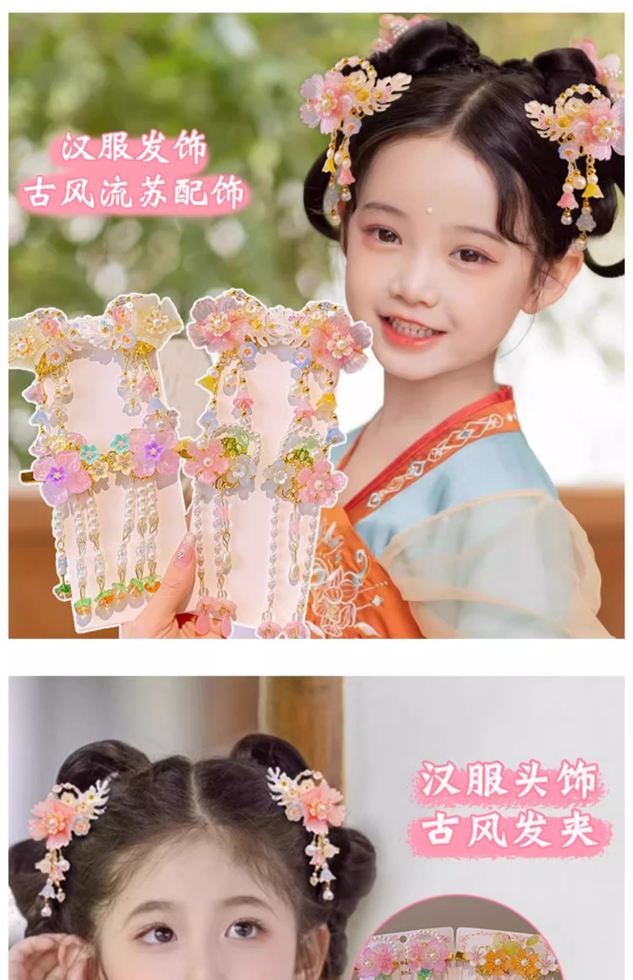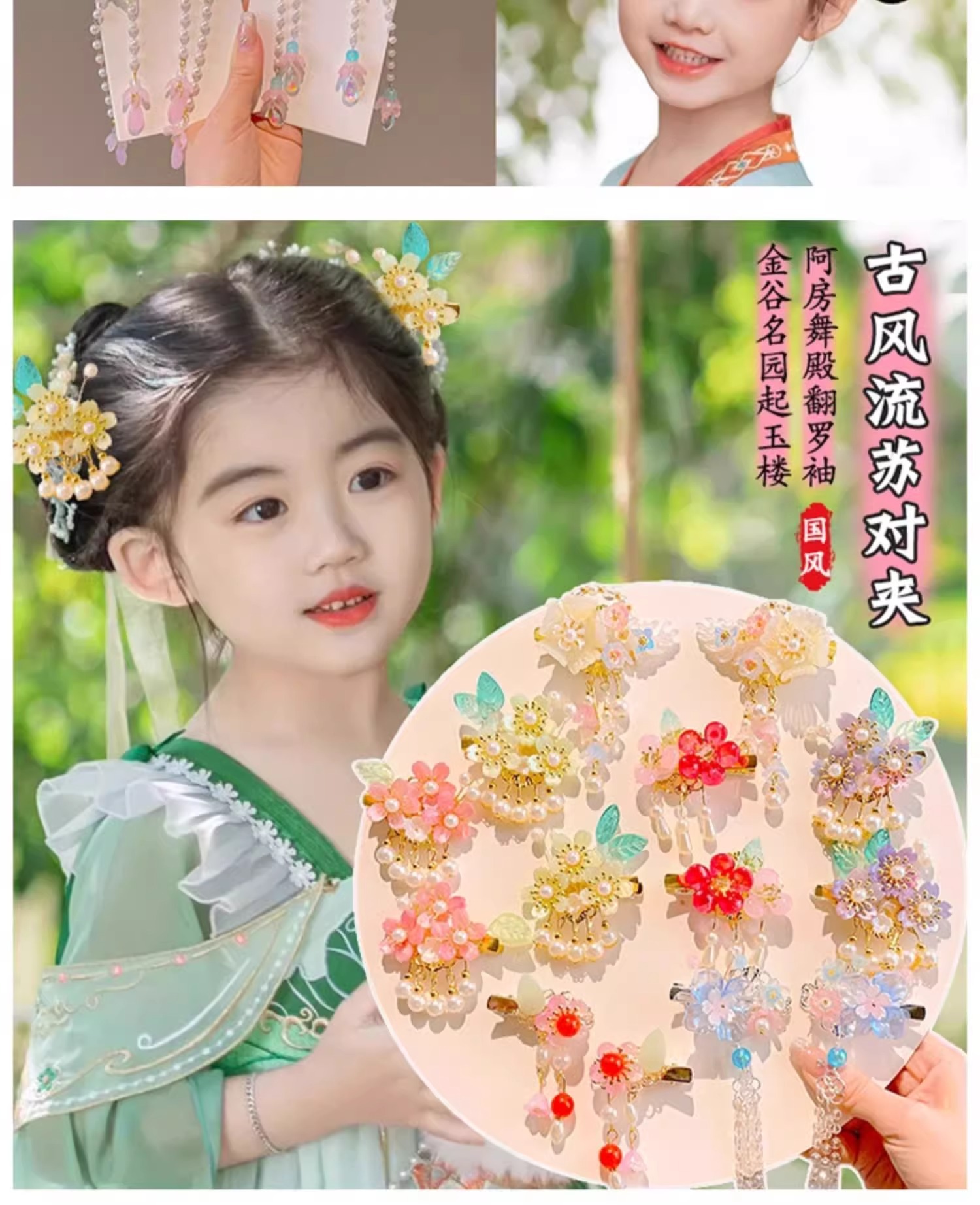 Niños vestidos de estilo antiguo para el cabello Hanfu flores bordas niñas super inmortales tarjeta de cabello tocado de estilo chino arco clip
