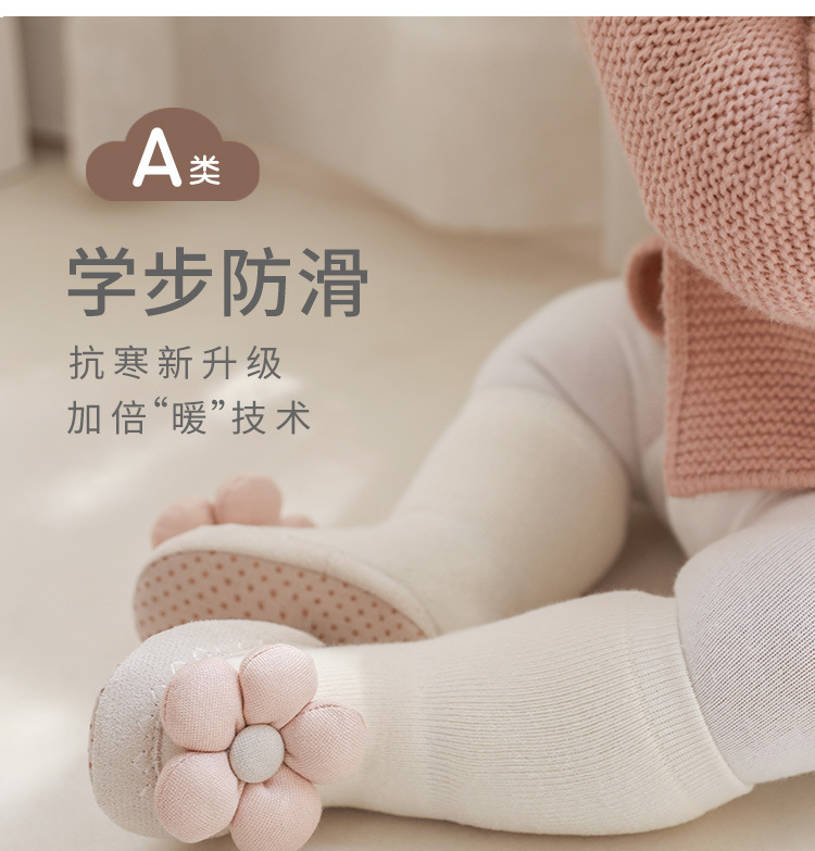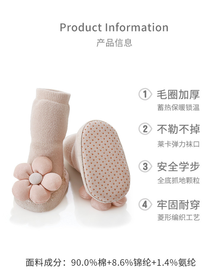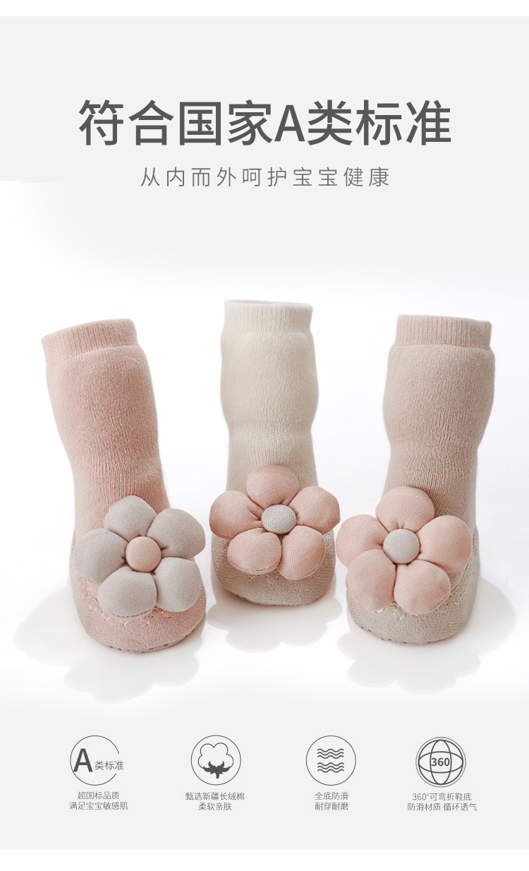 Los zapatos y los calcetines del piso de la niña Otoño e Invierno engrosados Terry cálido anti-caída Flower Princess zapatos y calcetines infantiles de cuero para niños pequeños