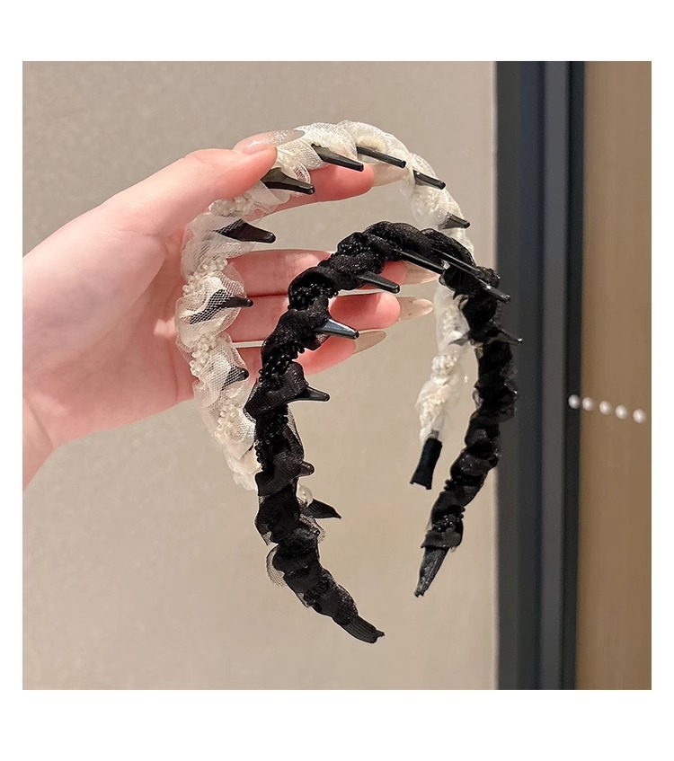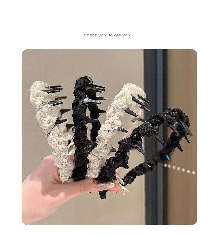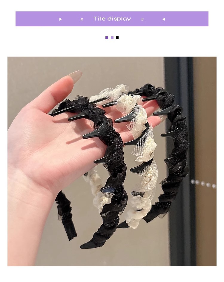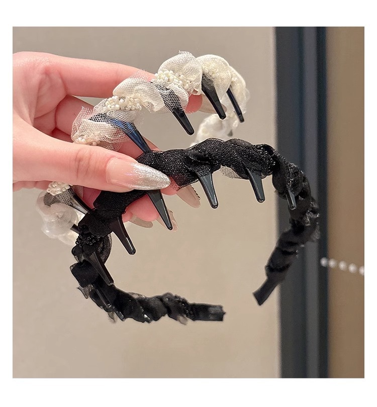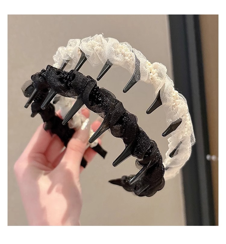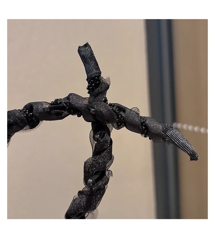 Diadema de diamantes de imitación de hilo de malla negra twist Diadema de temperamento superior de cráneo alto femenino con dientes, tarjeta de lujo ligera antideslizante, tocado facial