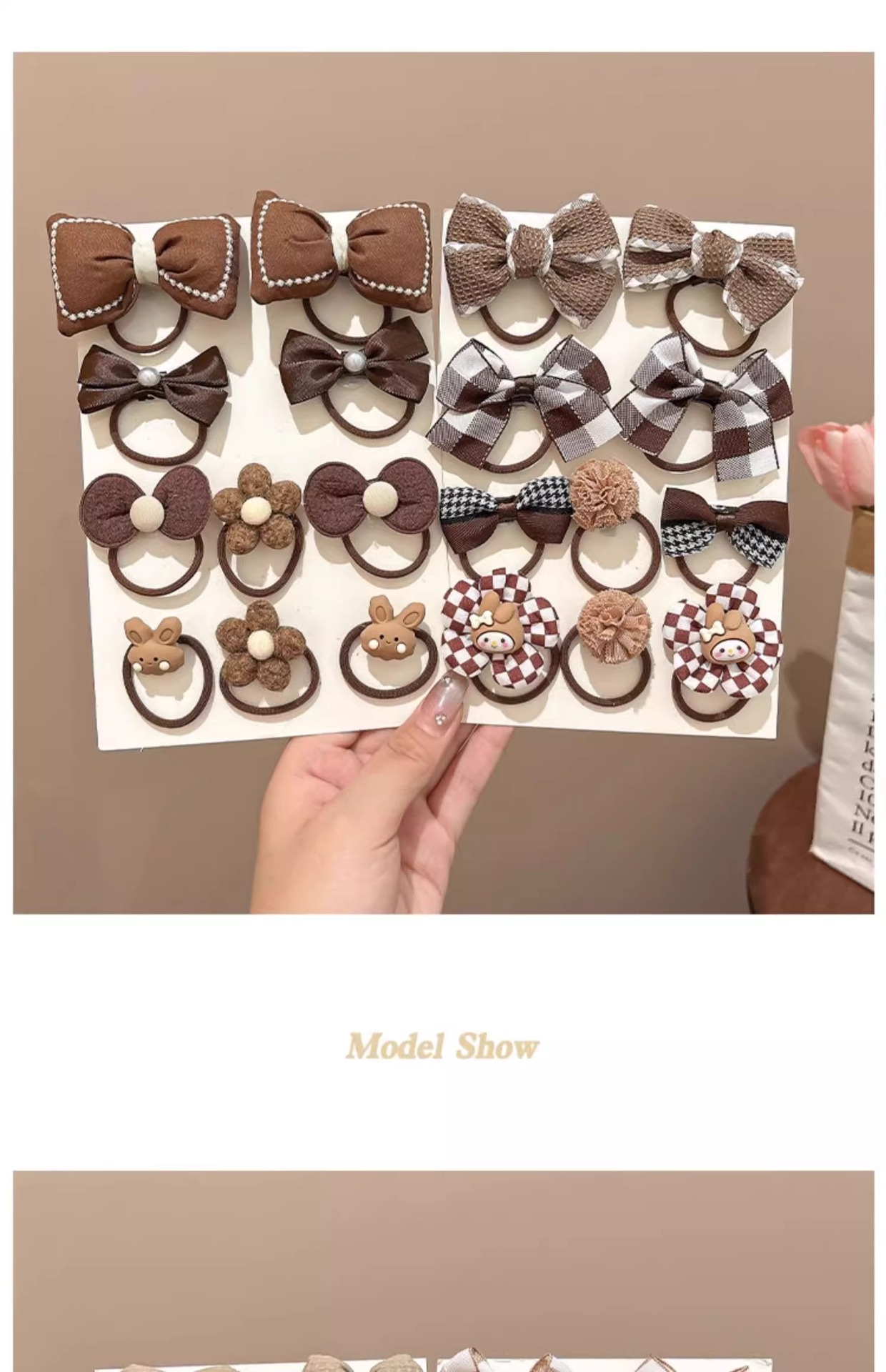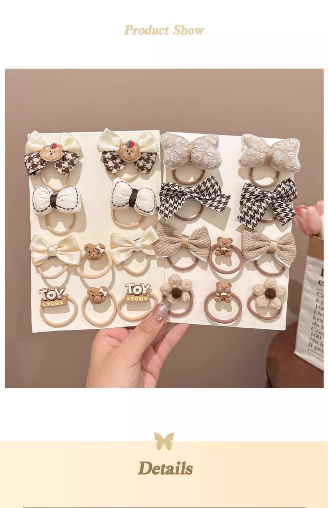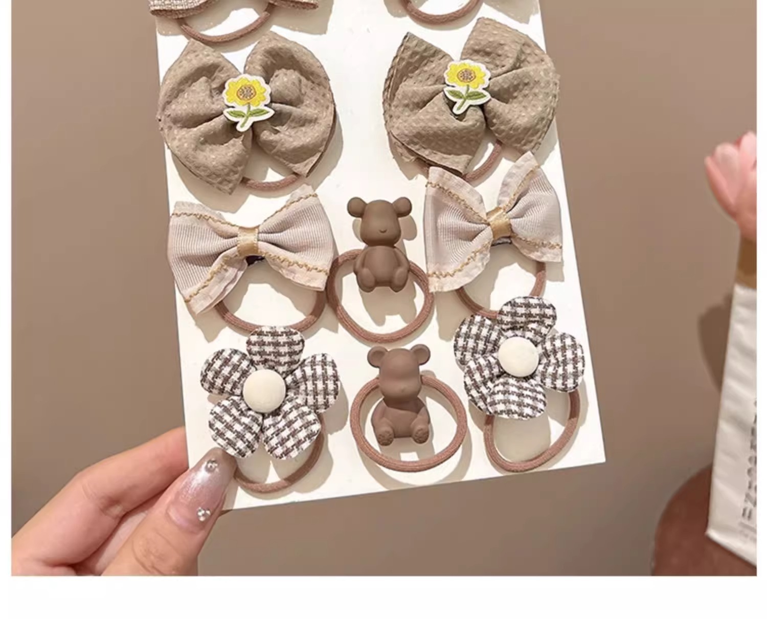 | Color | 1 juego de 10 piezas de oso. , 2 juegos de 10 piezas de conejito. , Juego de 10 piezas de 3 ¿ Miu bow. , 4 juegos de 10 piezas de lazo de oso. , 5 ¿ Star Bow 10 juegos. , 6 juegos de 10 piezas de oso lazado. , 7 juegos de 10 piezas de flores de lazo. , 8 juego de 10 piezas de lazo de color café. , 9 juego de 10 piezas de flores de color café. , 10 juegos de 10 piezas de qiange bird. |