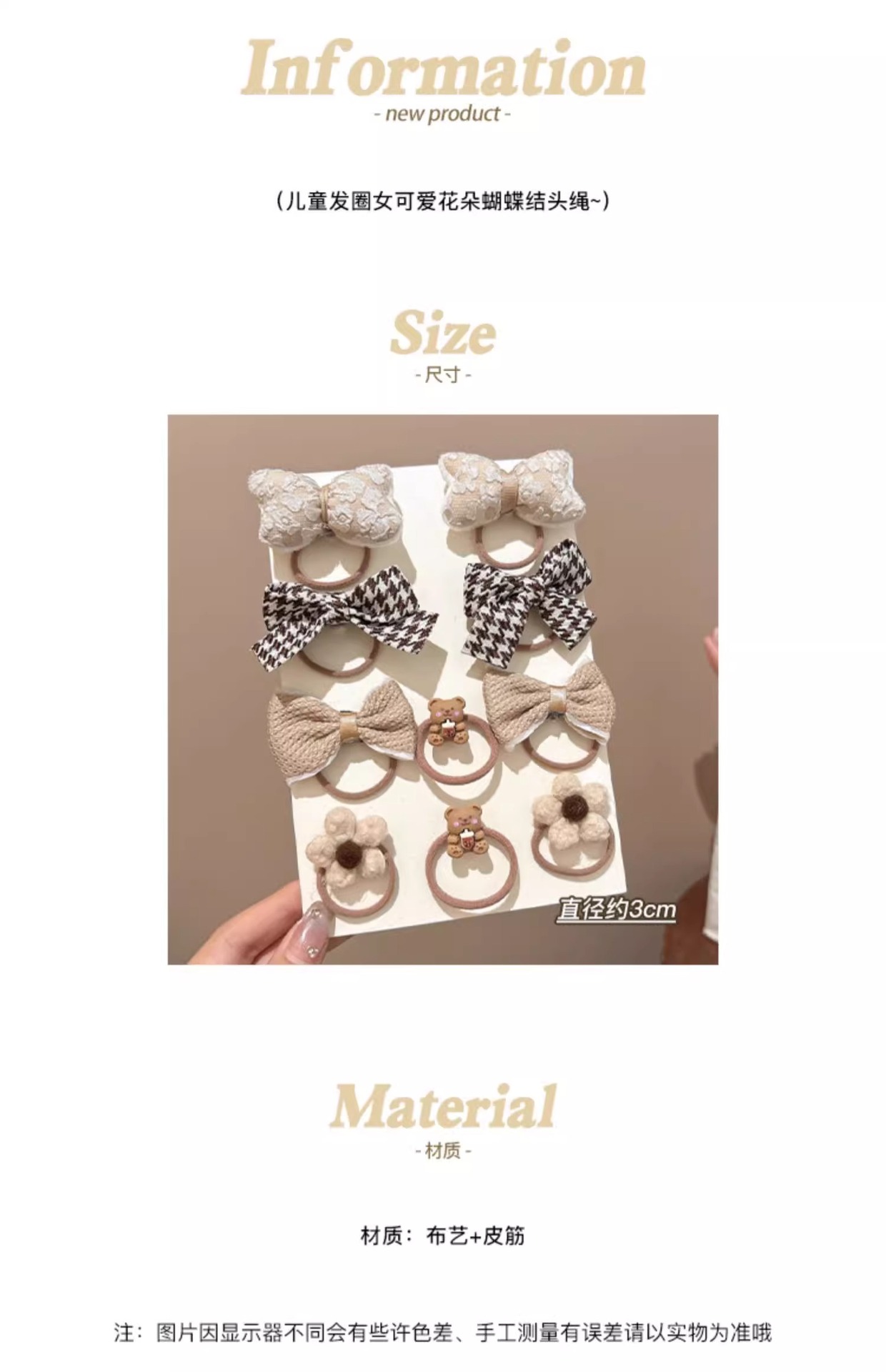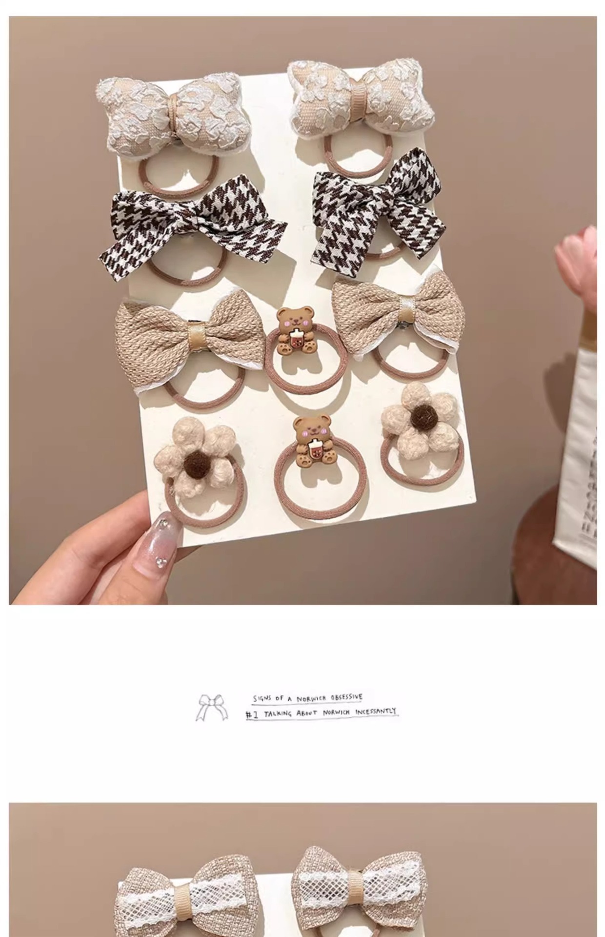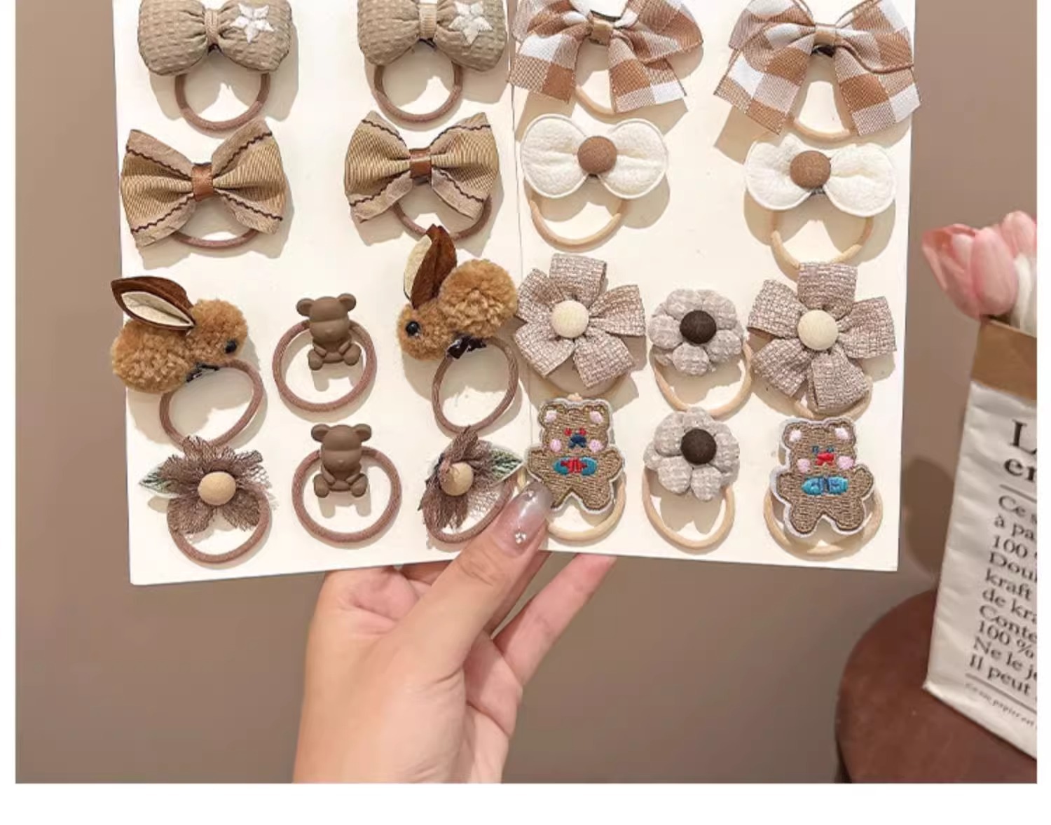 | Color | 1 juego de 10 piezas de oso. , 2 juegos de 10 piezas de conejito. , Juego de 10 piezas de 3 ¿ Miu bow. , 4 juegos de 10 piezas de lazo de oso. , 5 ¿ Star Bow 10 juegos. , 6 juegos de 10 piezas de oso lazado. , 7 juegos de 10 piezas de flores de lazo. , 8 juego de 10 piezas de lazo de color café. , 9 juego de 10 piezas de flores de color café. , 10 juegos de 10 piezas de qiange bird. |