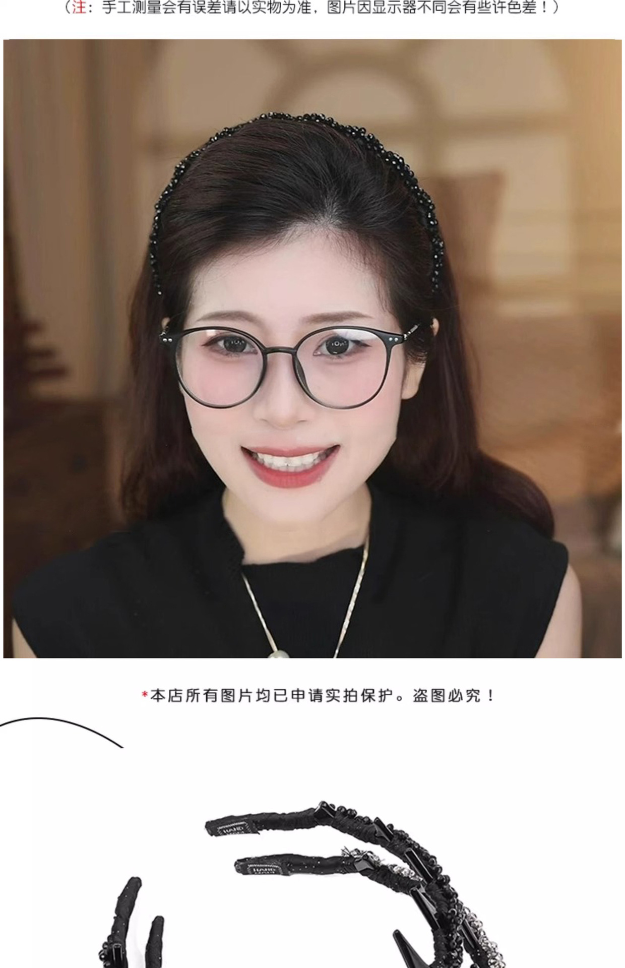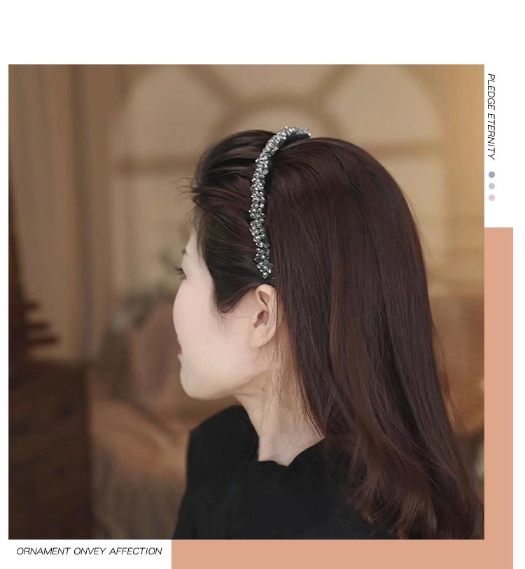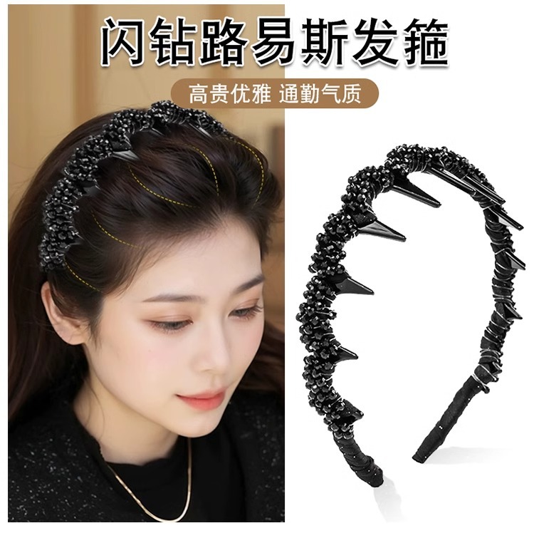 High-end cuentas negras brazalete para mujeres 2025 nuevo lujo ligero de alta presión craneal brazalete dientes antideslizante lavar la cara tarjeta de pelo