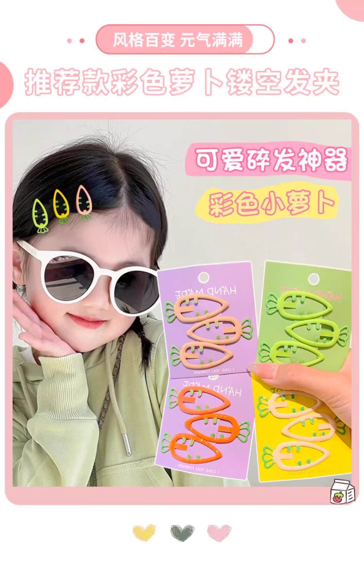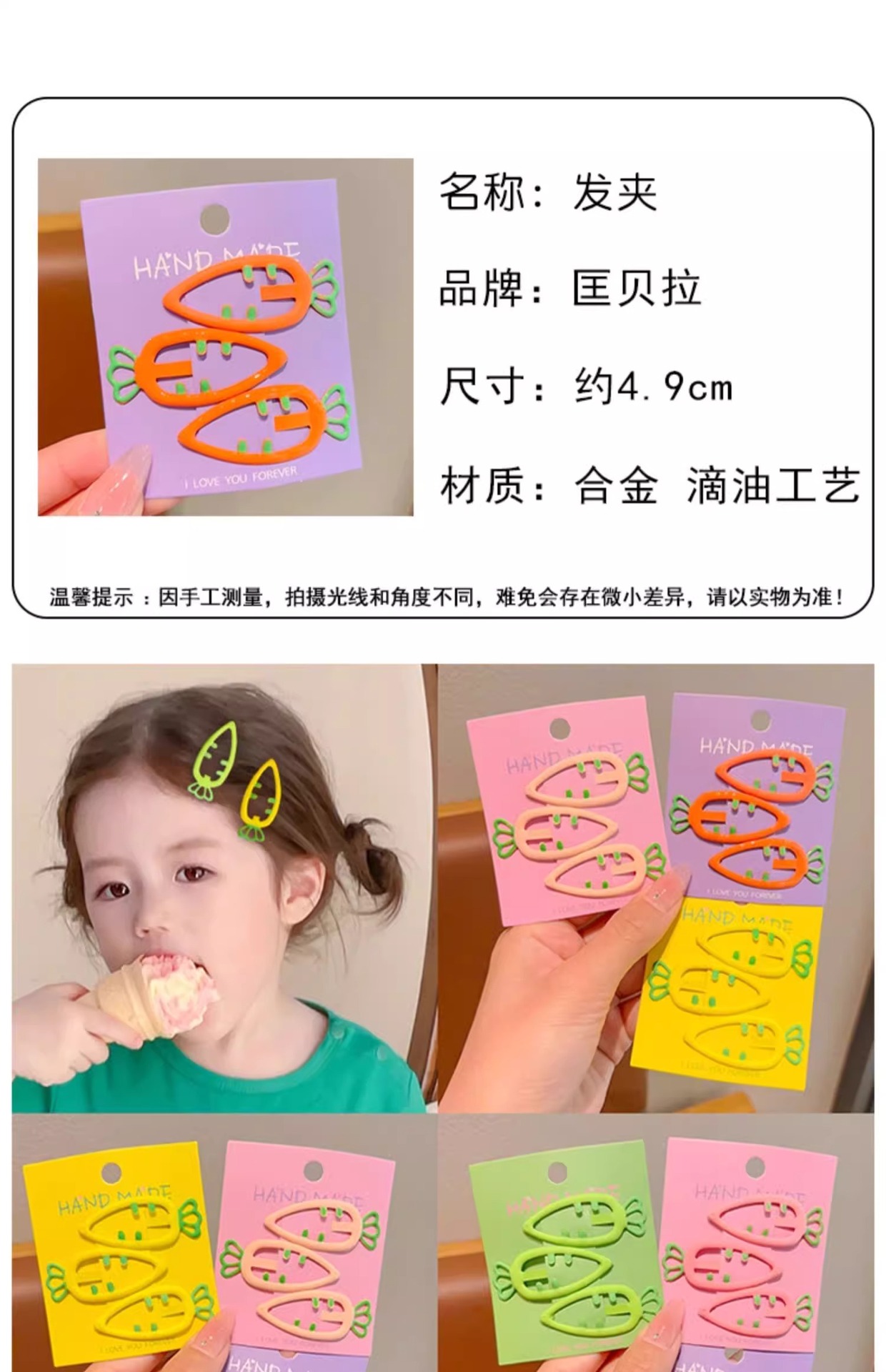 Niños color hueco zanahoria pinzas de cabello para mujeres 2024 nueva niñas lindas frente pinzas de cabello rotas