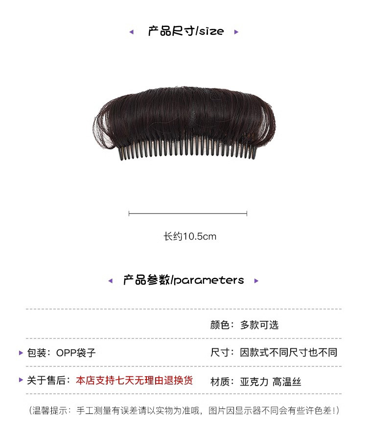 Peluca peine pelo femenino artefacto mullido alta Cráneo almohadilla superior raíz del pelo clip de pelo invisible almohadilla de cabeza natural bolsa de pelo