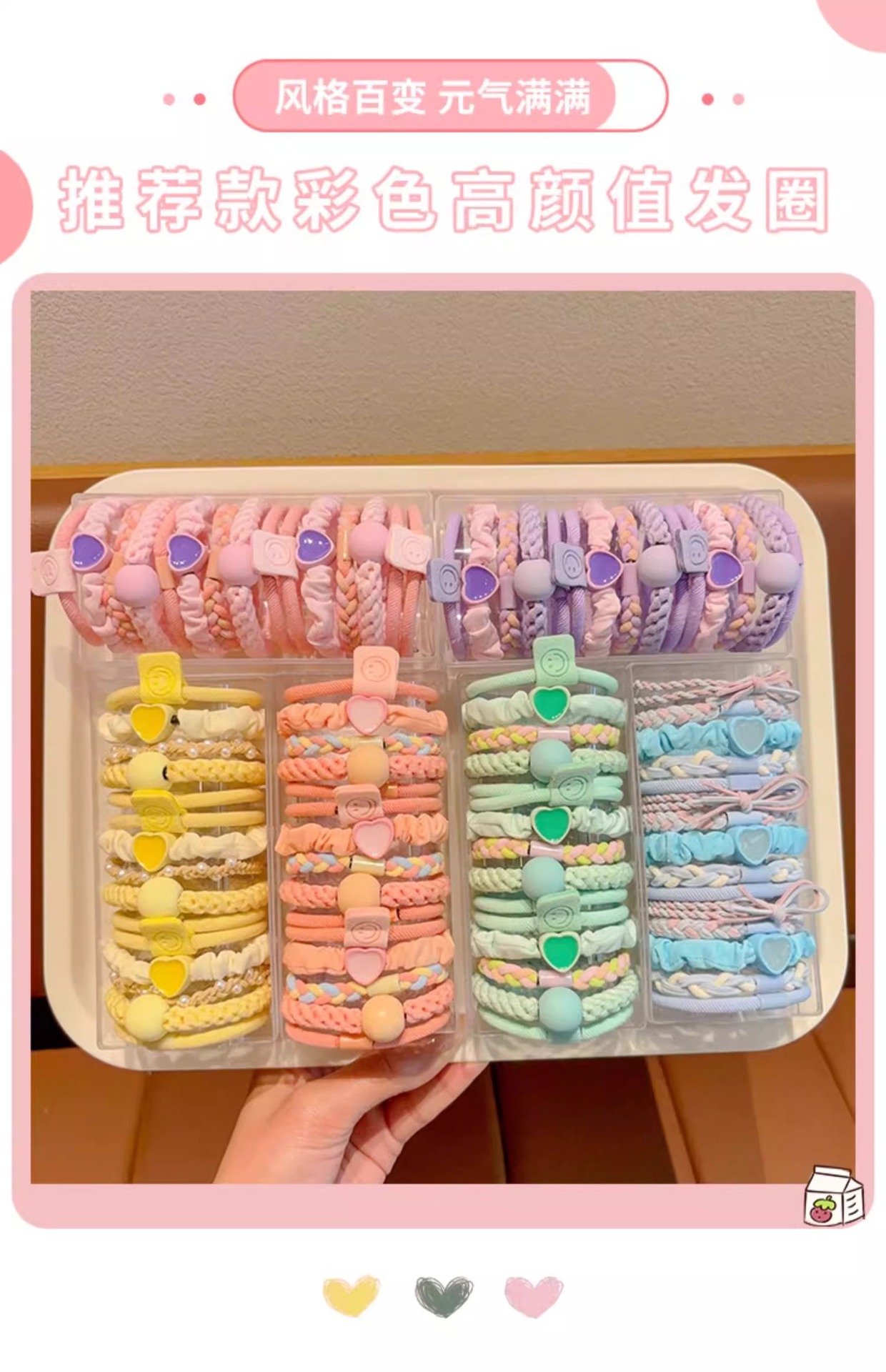 Cuerda de pelo de los niños 2024 Nuevo estilo coreano durable alta banda de goma elástica cuerda de pelo niñas bolas de colores