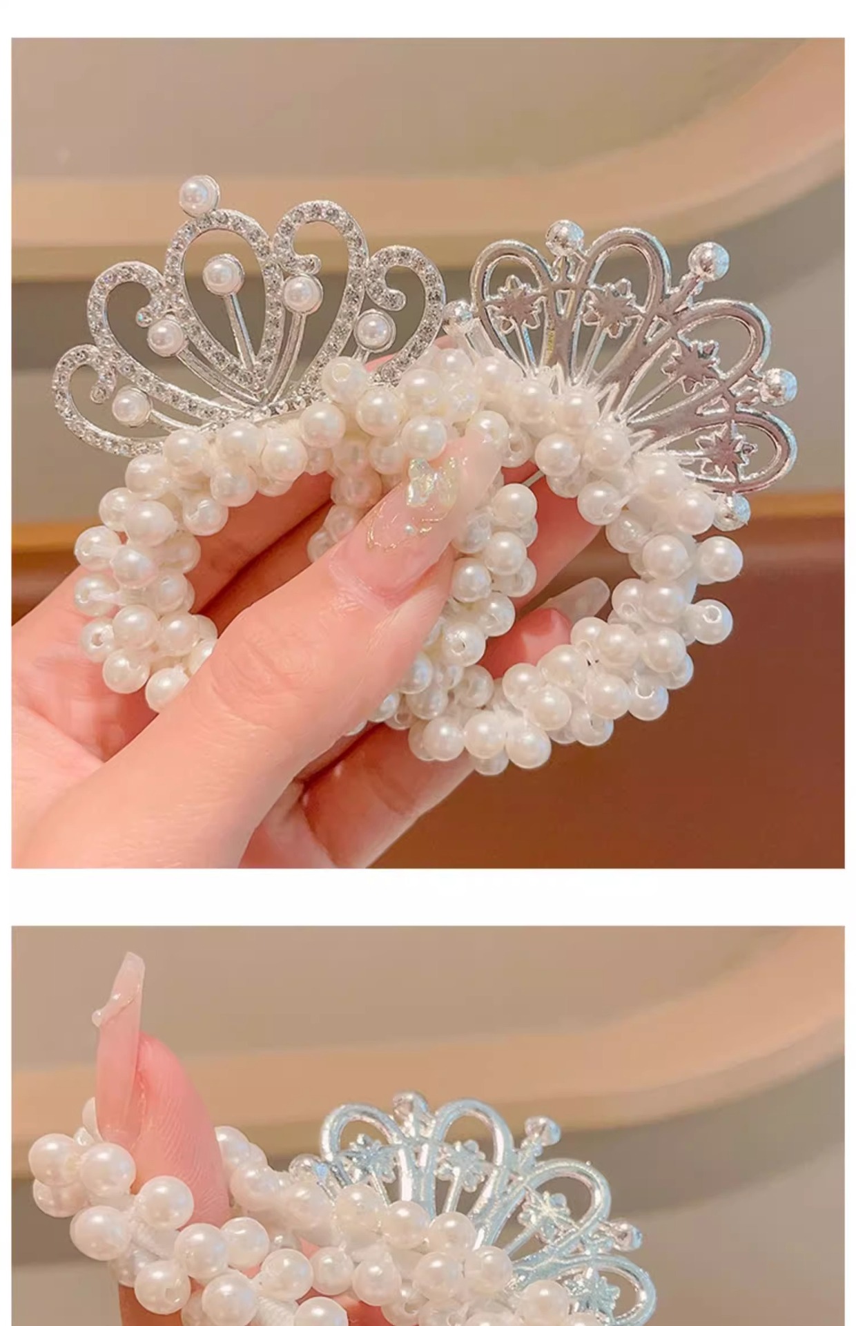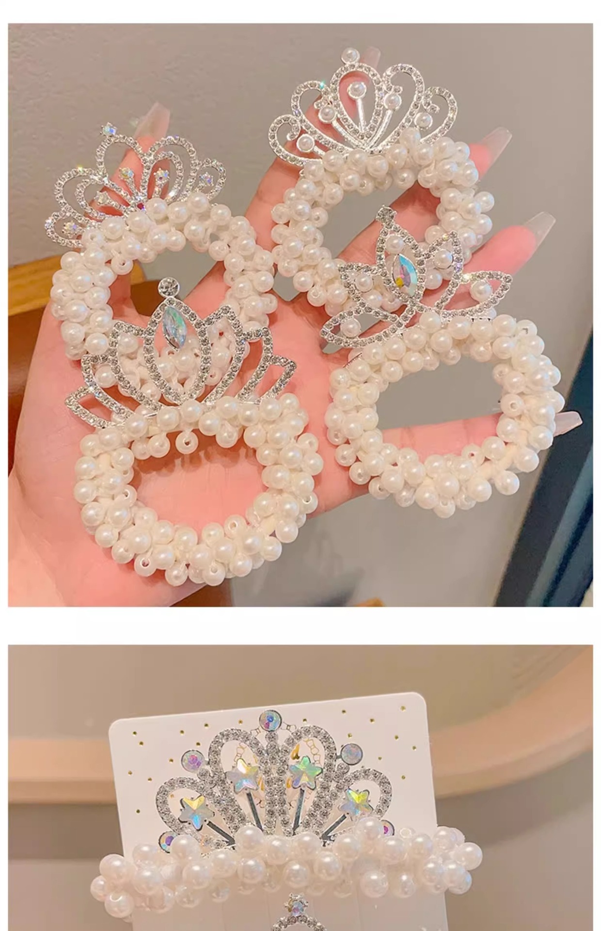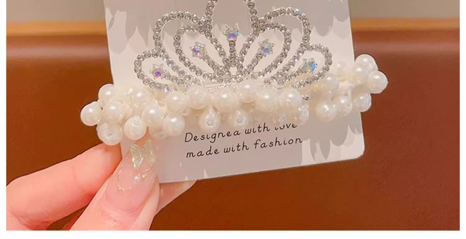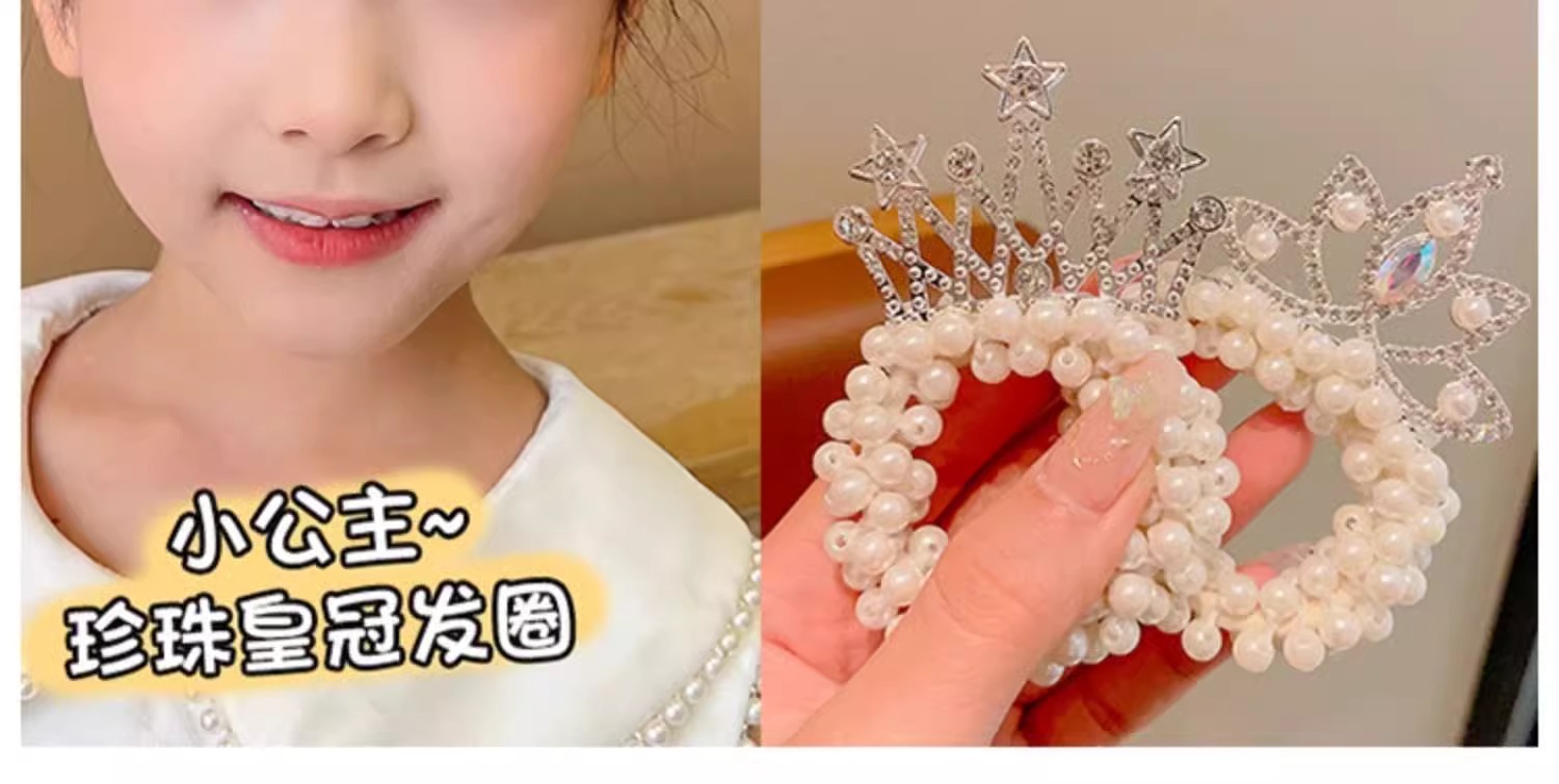 Cuerda de pelo de princesa para niños Super Fairy Girl Pearl Crown hair Ring tie Ball Head accesorios para el cabello Girl Crown hair rope tocado