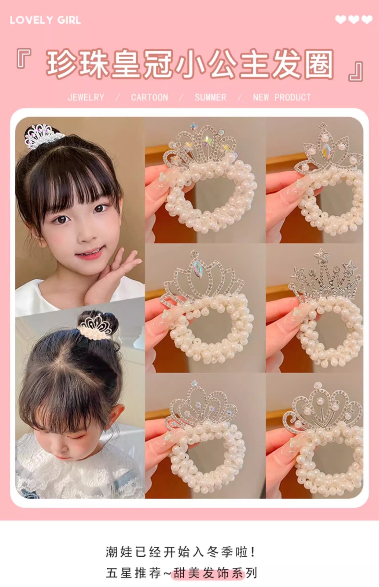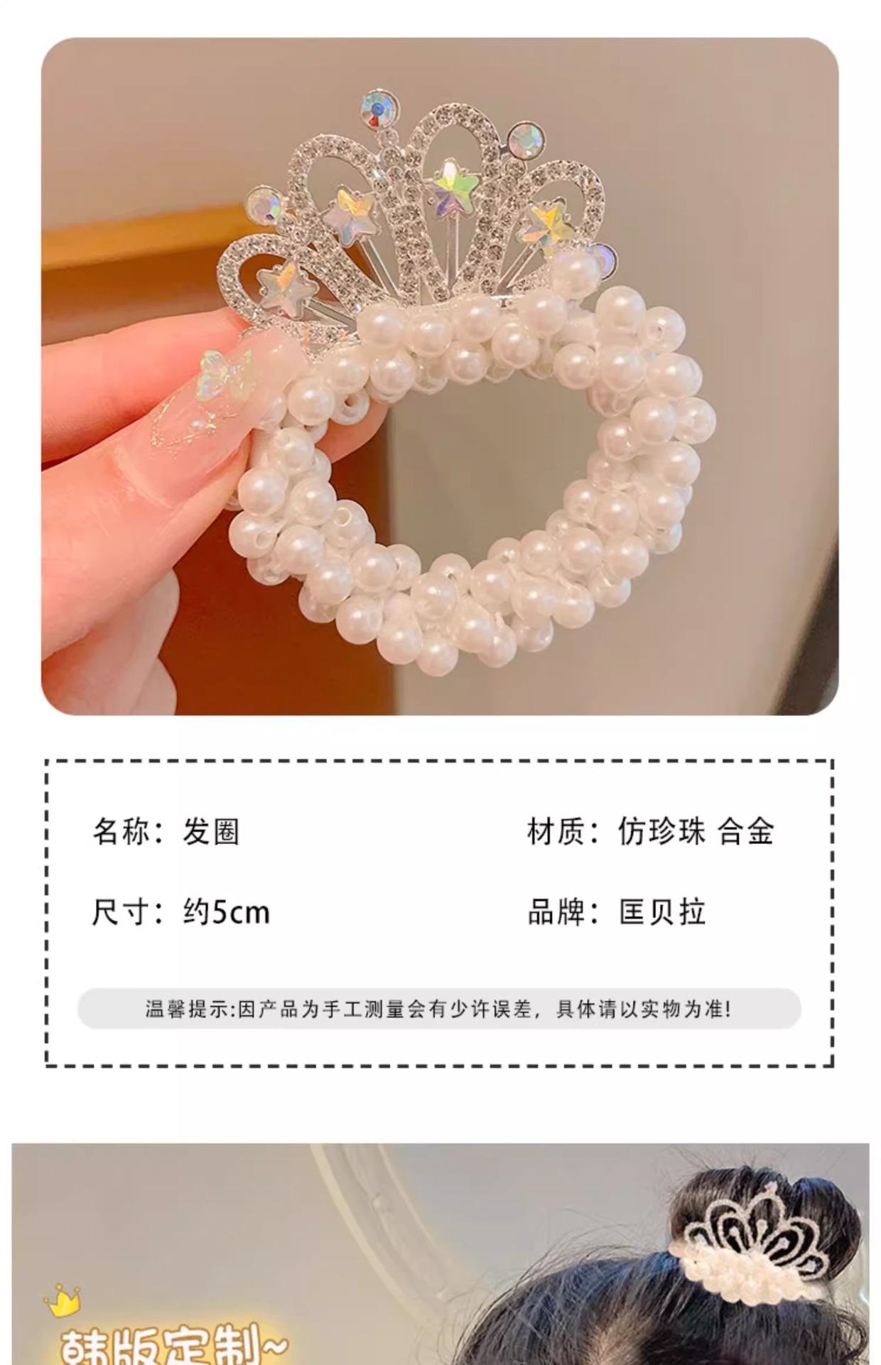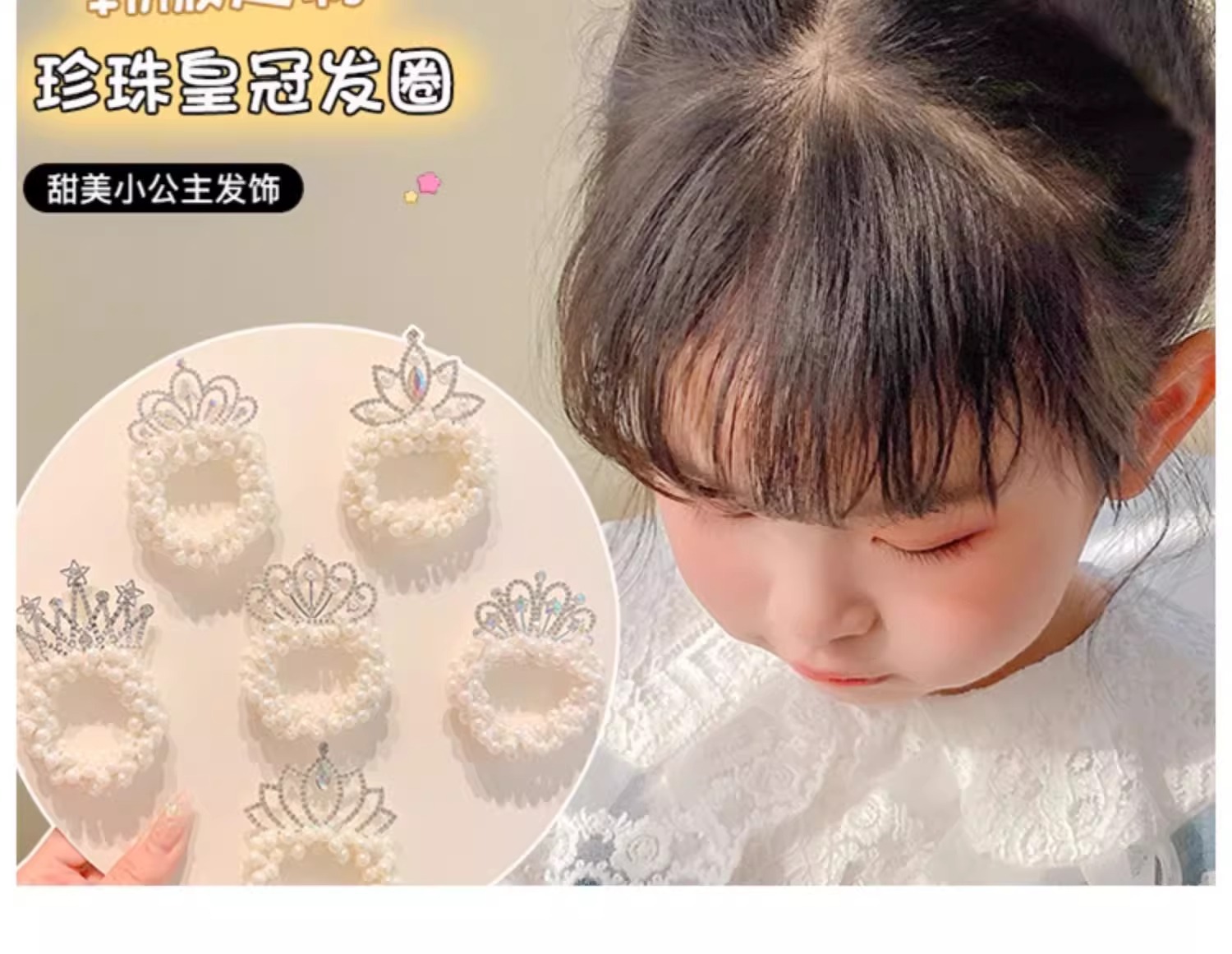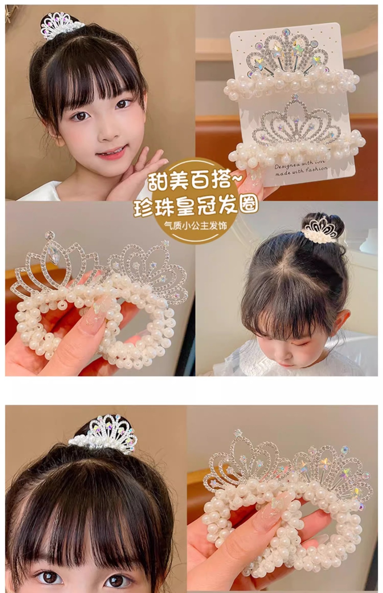 Cuerda de pelo de princesa para niños Super Fairy Girl Pearl Crown hair Ring tie Ball Head accesorios para el cabello Girl Crown hair rope tocado