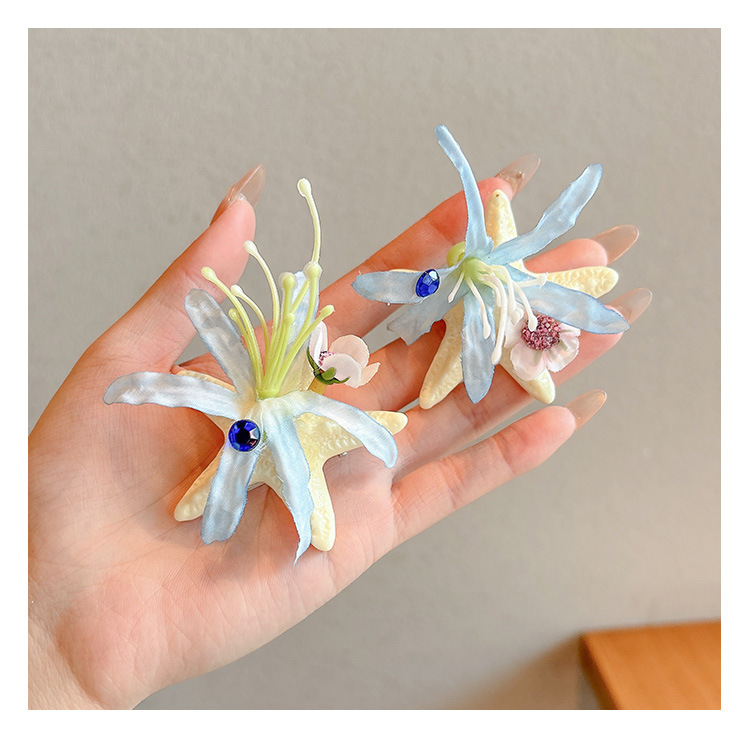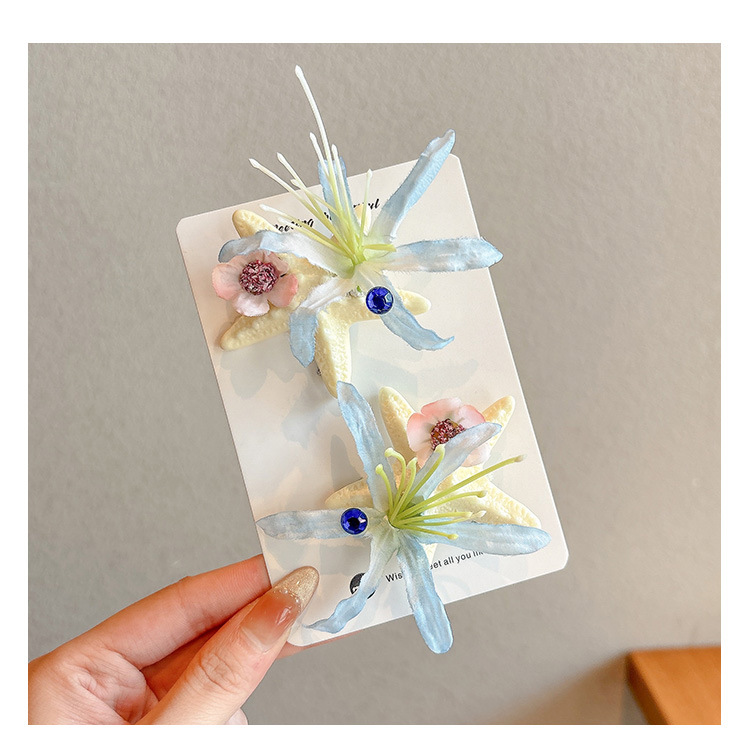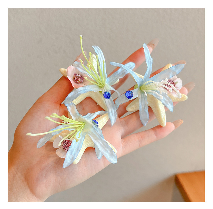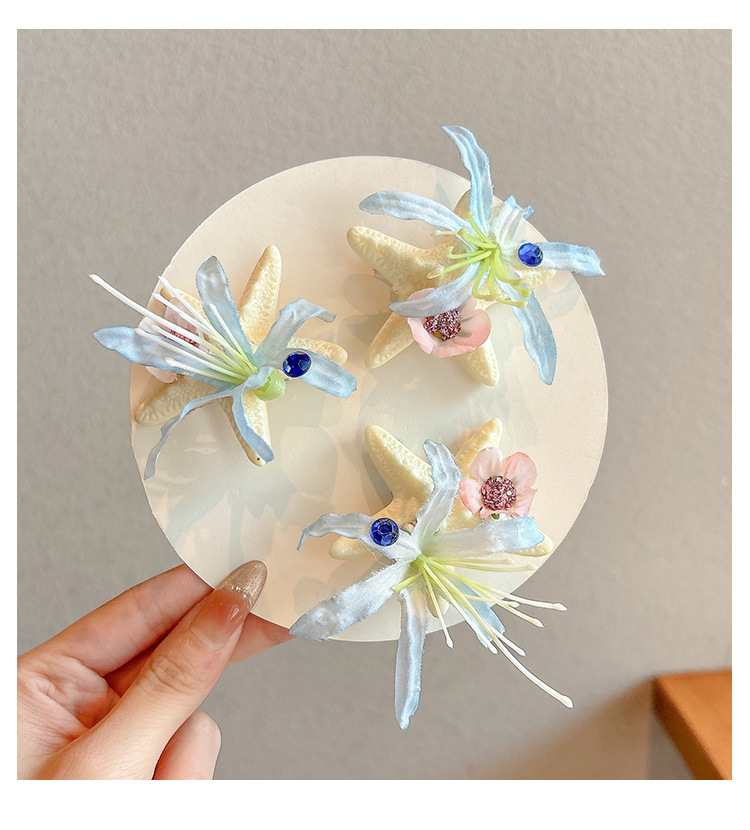 Ocean Series Sea Star Flower Horquilla Sweet Girl Hot Girl Super Fairy Clip lateral Tour de playa Ambiente de vacaciones Tocar tarjeta de fotos