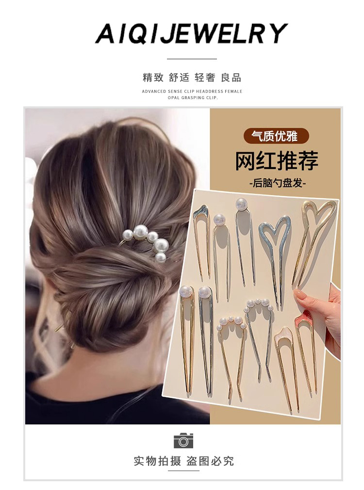 Horquilla de cabello en forma de U de perla de alta calidad horquilla de cabello en la parte posterior de la cabeza femenina horquilla de aleación tocado nuevo peine de horquilla chino