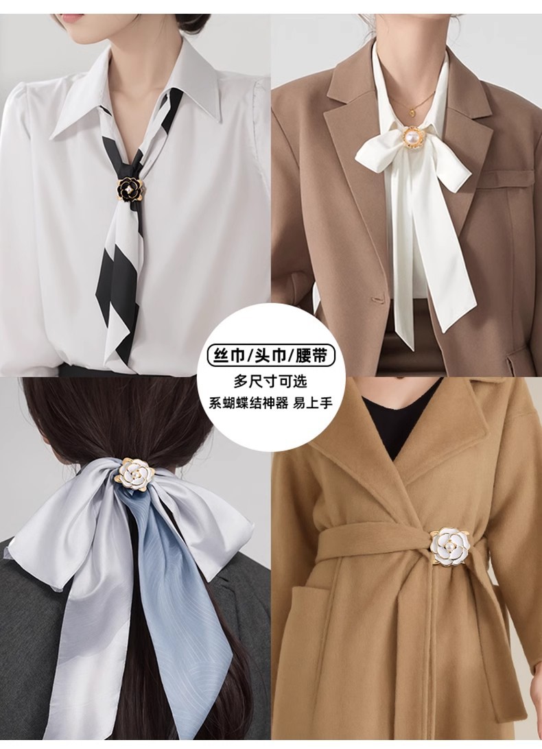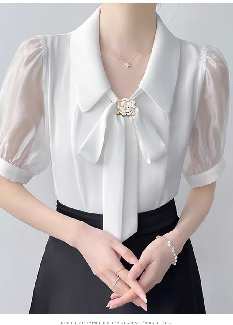 Botón de toalla de seda de alta calidad para mujer de alta gama 2025 nuevo estilo arco esquina anudada camisa de flores serpentina anudada hebilla anudada