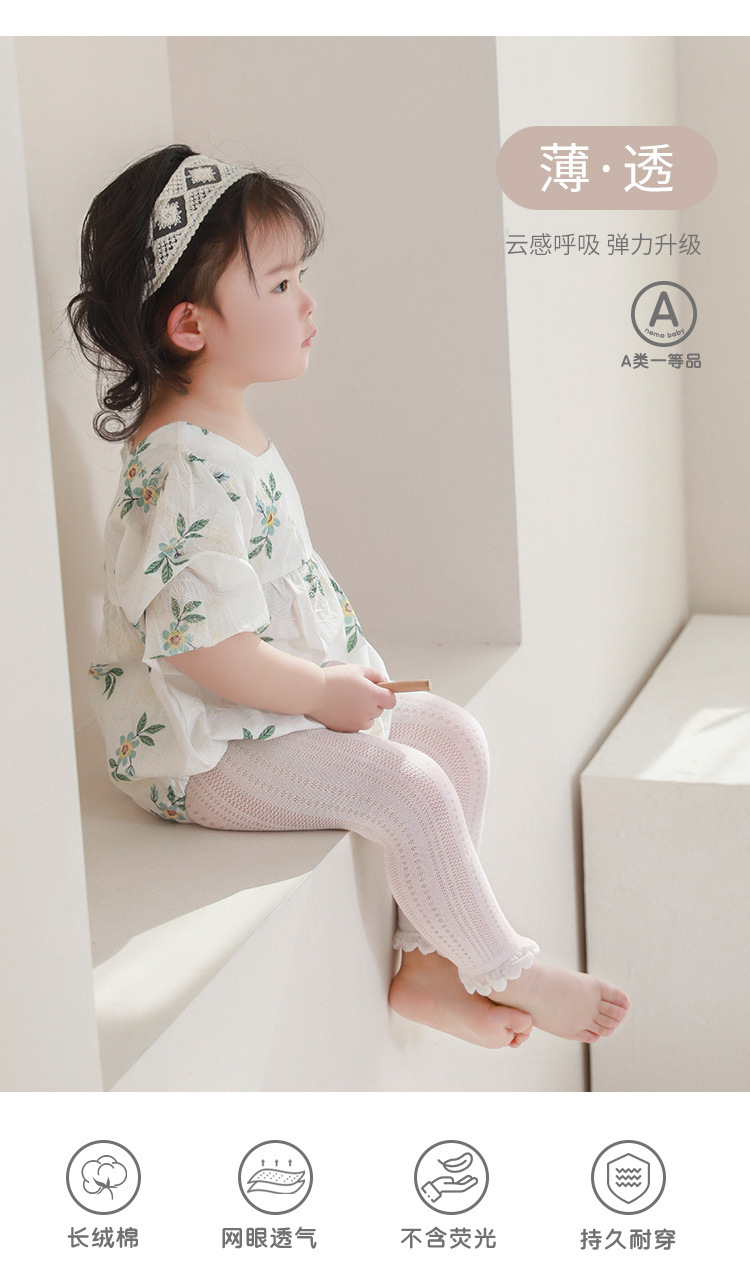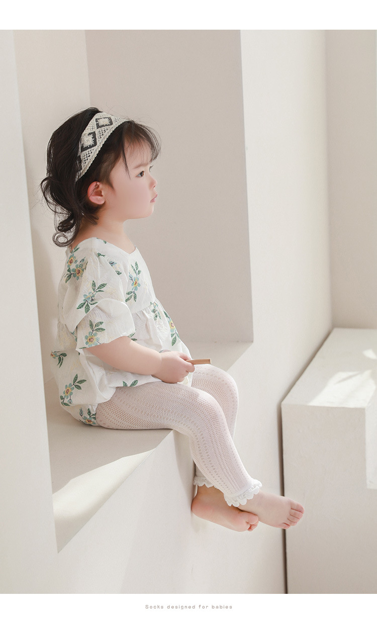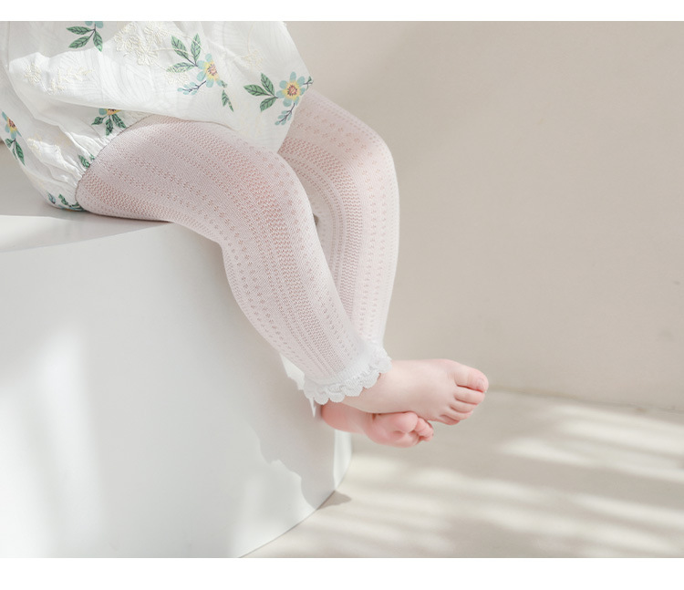 2024 verano nuevo bebé niñas encaje pantalones cortos malla delgada princesa bebé color sólido niñas polainas Calcetines