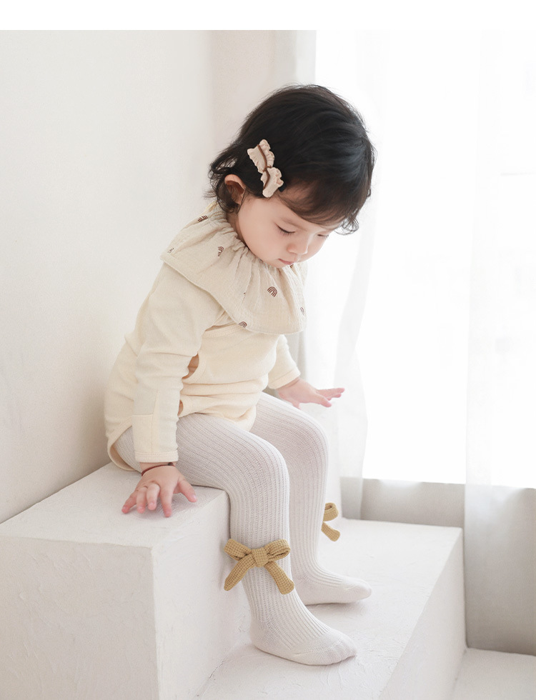 2023 otoño nuevo mono del bebé Corea Sur estilo occidental arco niñas pantyhose danza blanca polainas