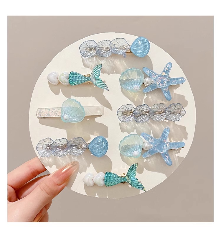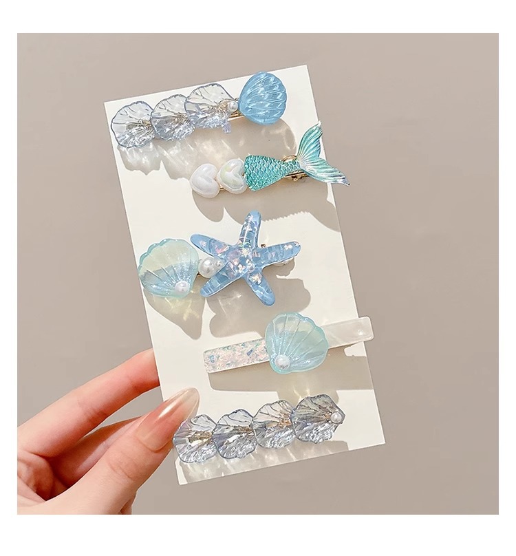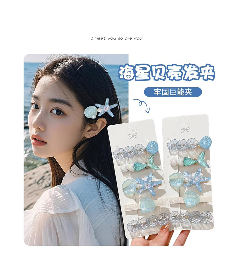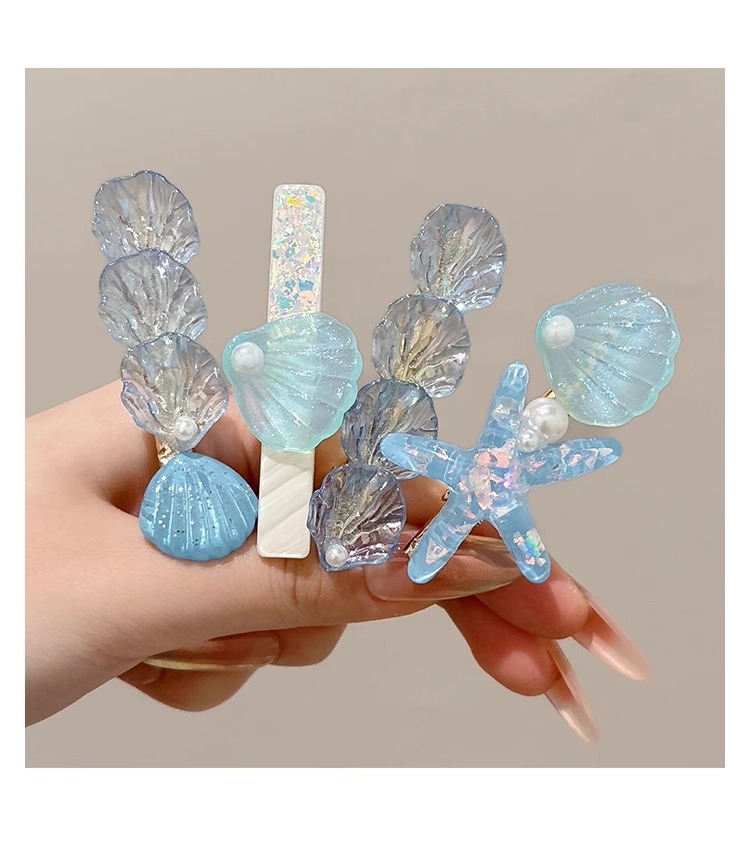 Estrella de mar chica flequillo pinza de concha pinza para el cabello accesorios para el cabello horquilla en la parte posterior de la cabeza, cabello roto de perlas, clip lateral para el cabello, clip de pico de pato