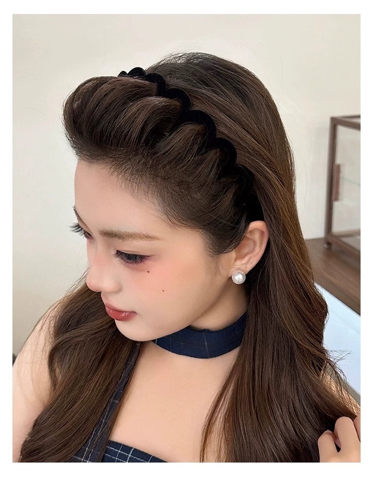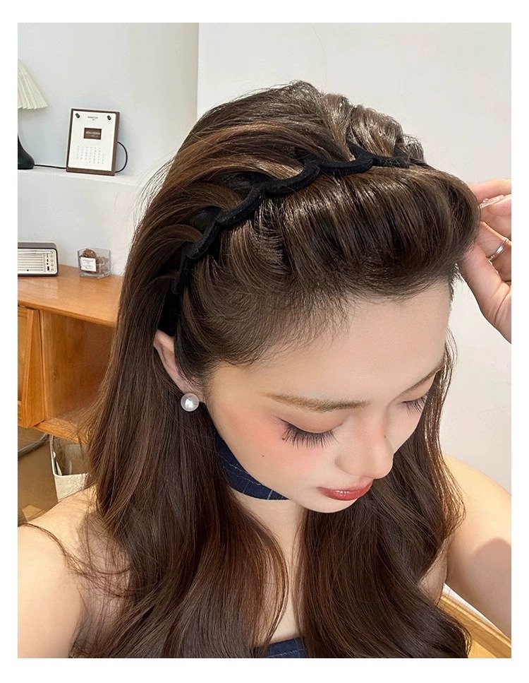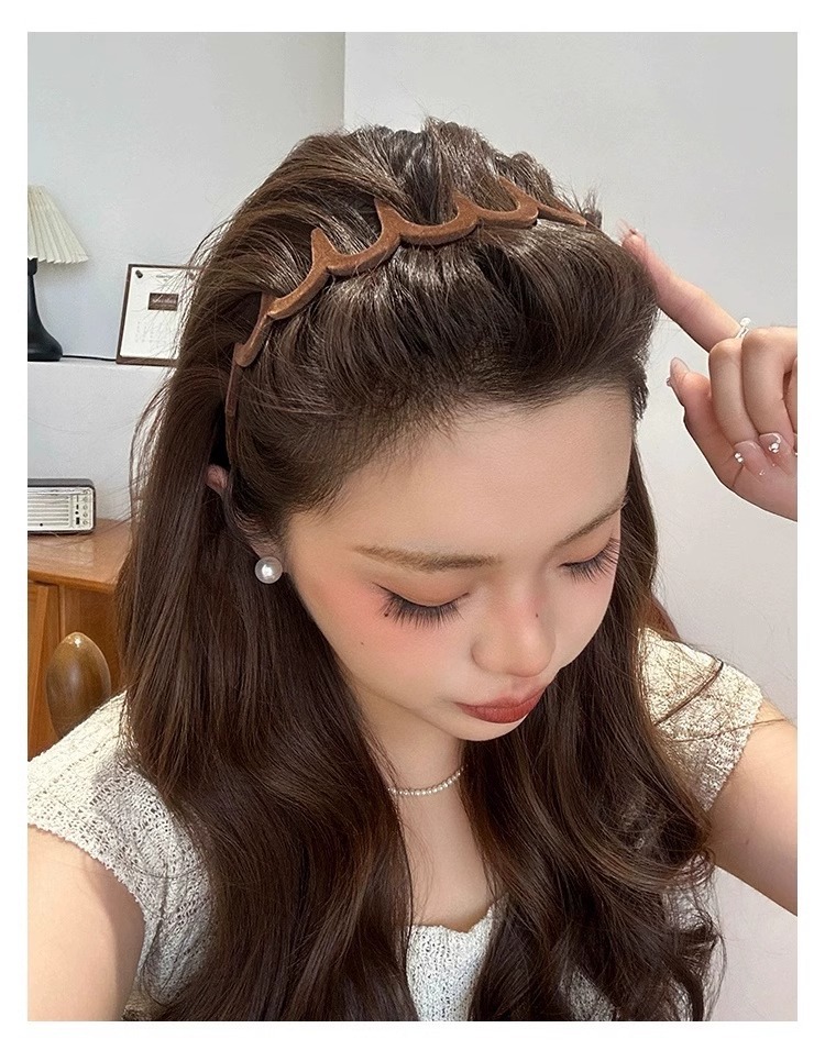 Coreana de gran altura craneal ondulado cabello para mujeres otoño y invierno flocado lavado de la cara de presión cabello de cabeza de la cara de la prensa de la cabeza de la cabeza de la cara pequeña presión de la broca de pelo