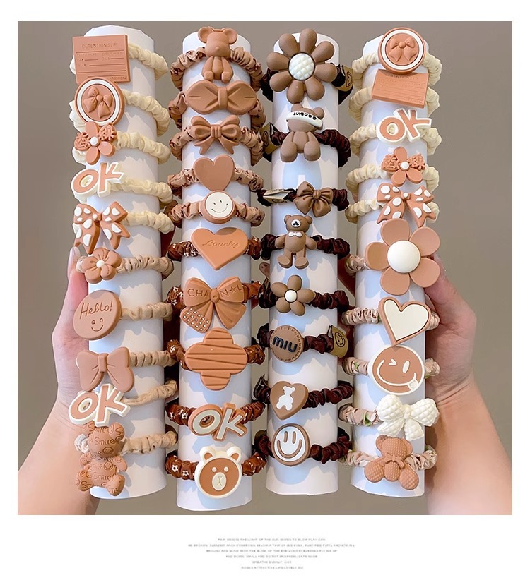 Cuerdas de cabello de color leche para niños flores anillo de cabello arco de goma para niñas no lastimar el cabello banda de goma para el cabello para niñas