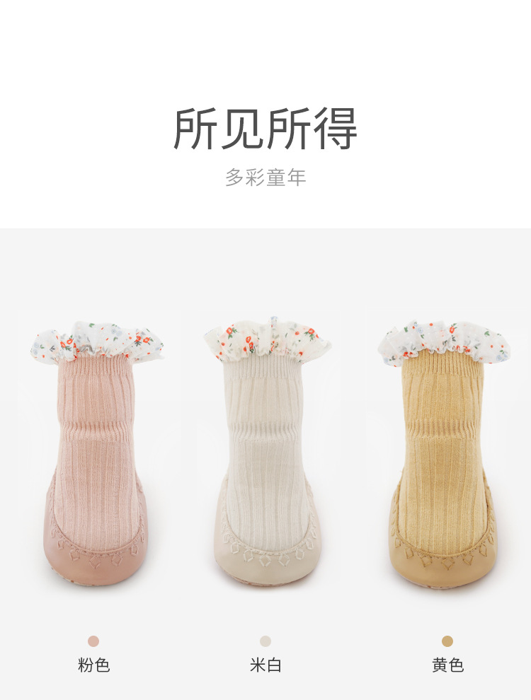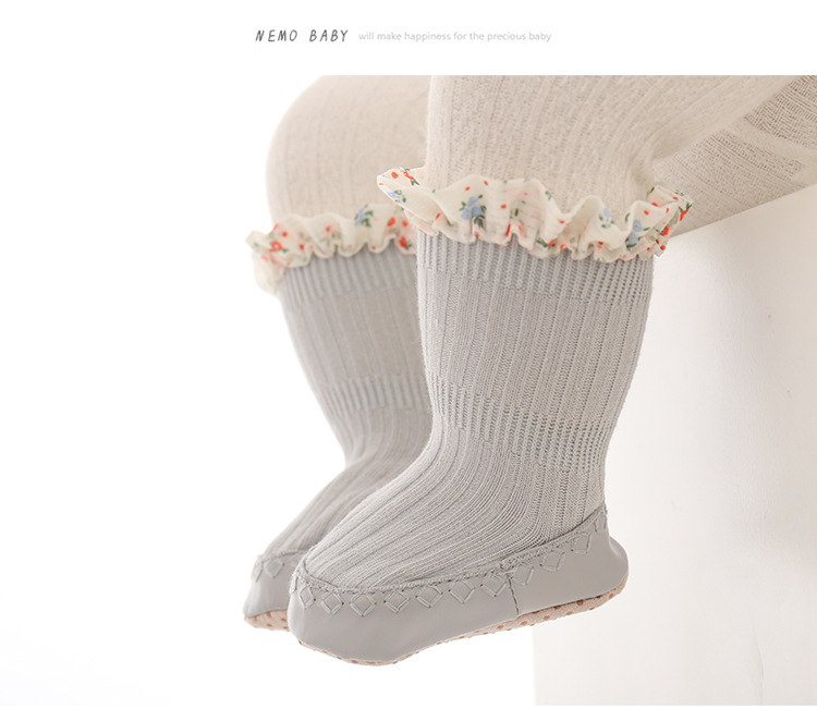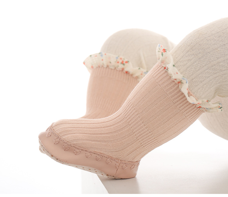 Zapatos de piso de bebé y calcetines 2023 primavera nueva Corea del Sur lindo encaje suela de cuero Zapatos Bebé princesa niño calcetines Zapatos