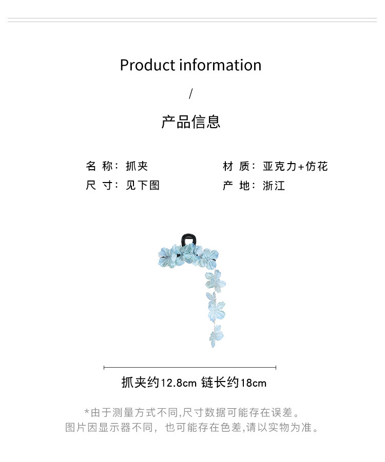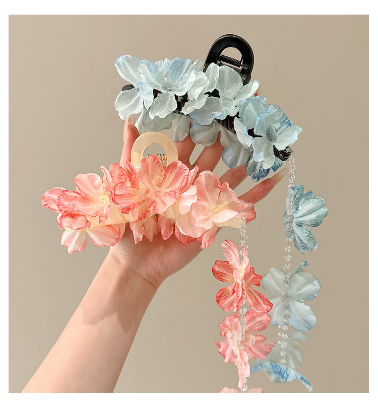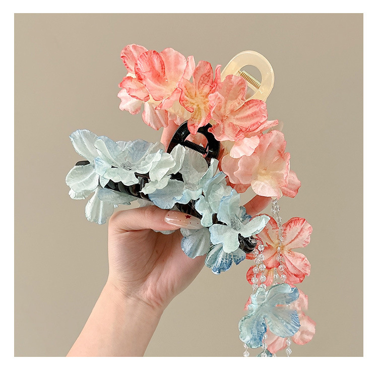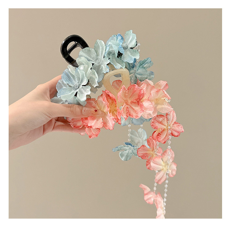 Hortenida azul agarrando clip de cabeza de mujer clip de tiburón floreciente clip de pelo 2025 nuevo tocado de playa