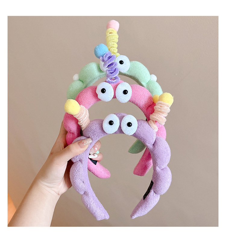 Bonito y divertido barra de torsión, banda de cabello para niños con ojos grandes, tocado de cabello para mujeres, clip de cabello para el cabello de alta cabeza antideslizante para lavar la cara.