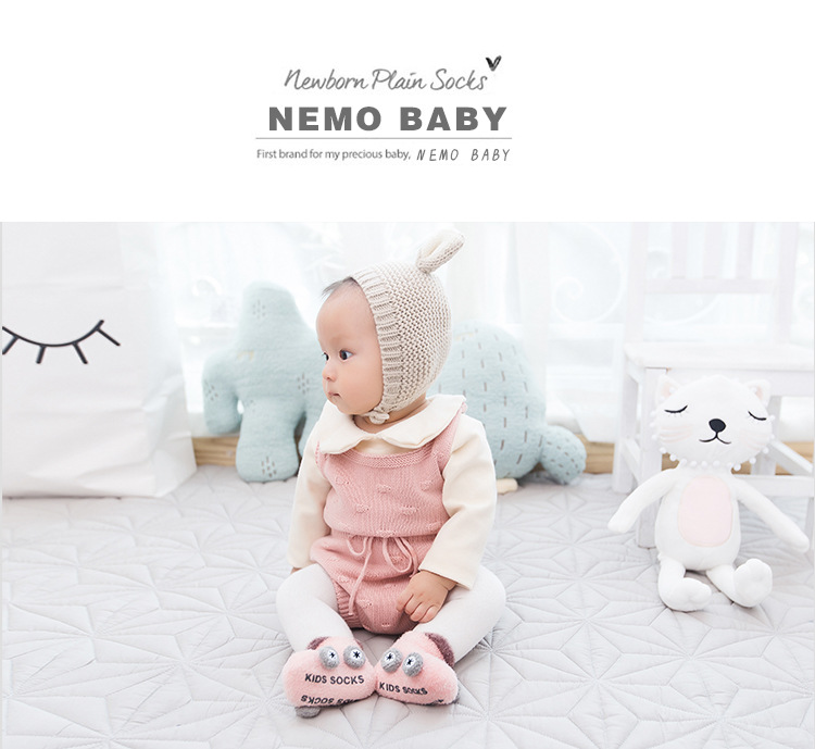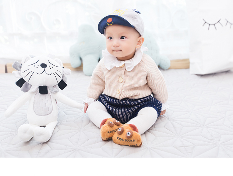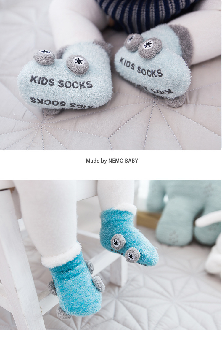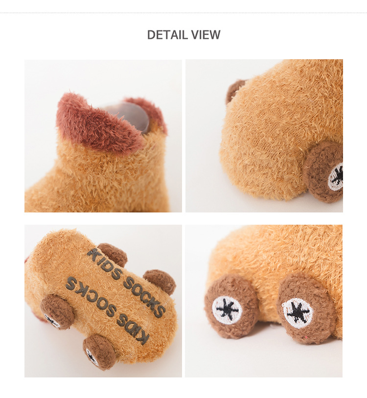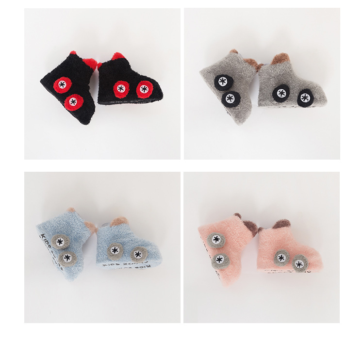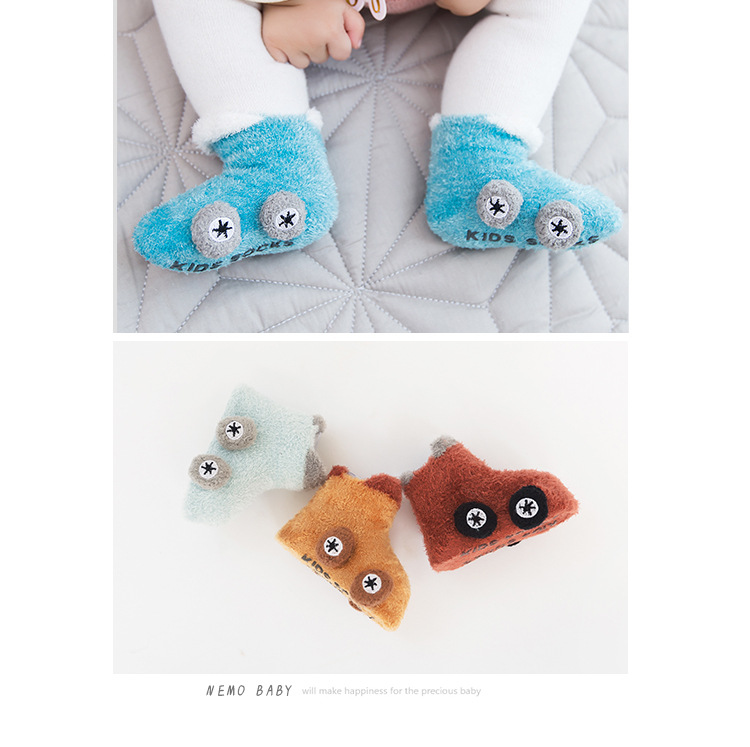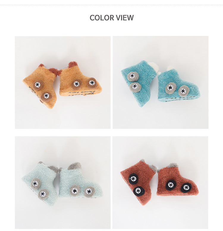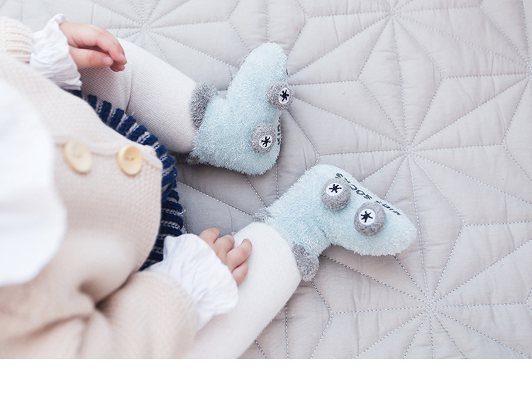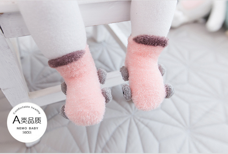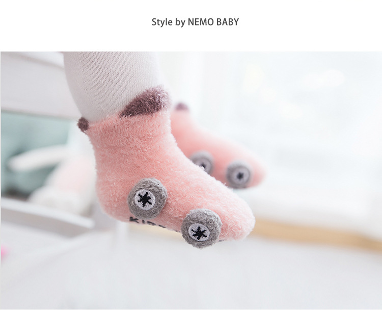 Otoño e invierno engrosado calcetines de bebé 0-3 años de edad niños de dibujos animados hilo de plumas coche antideslizante piso zapatos de bebé y calcetines
