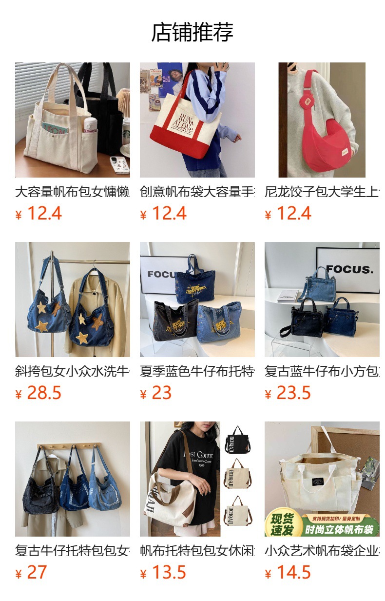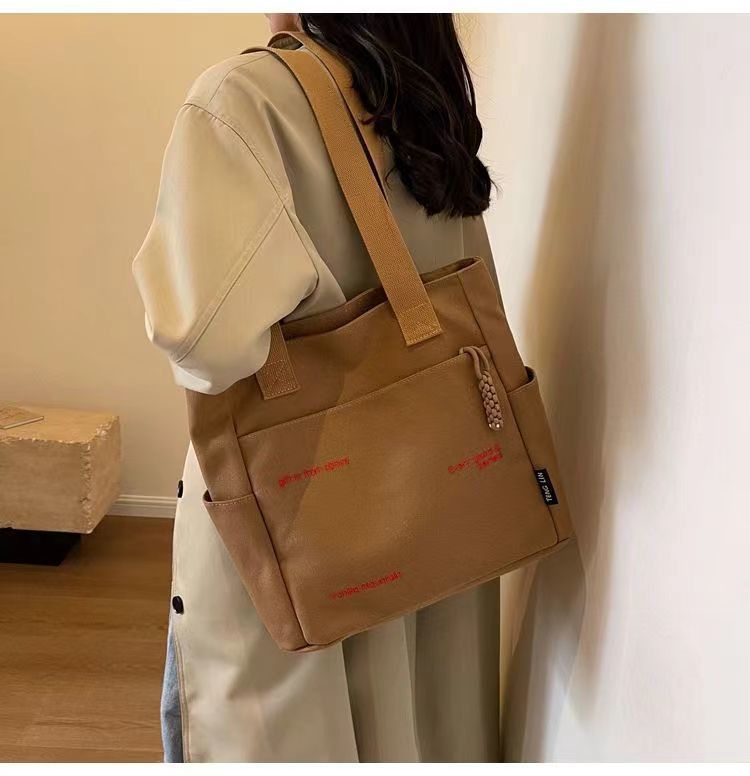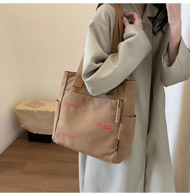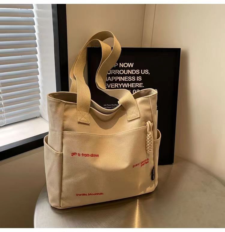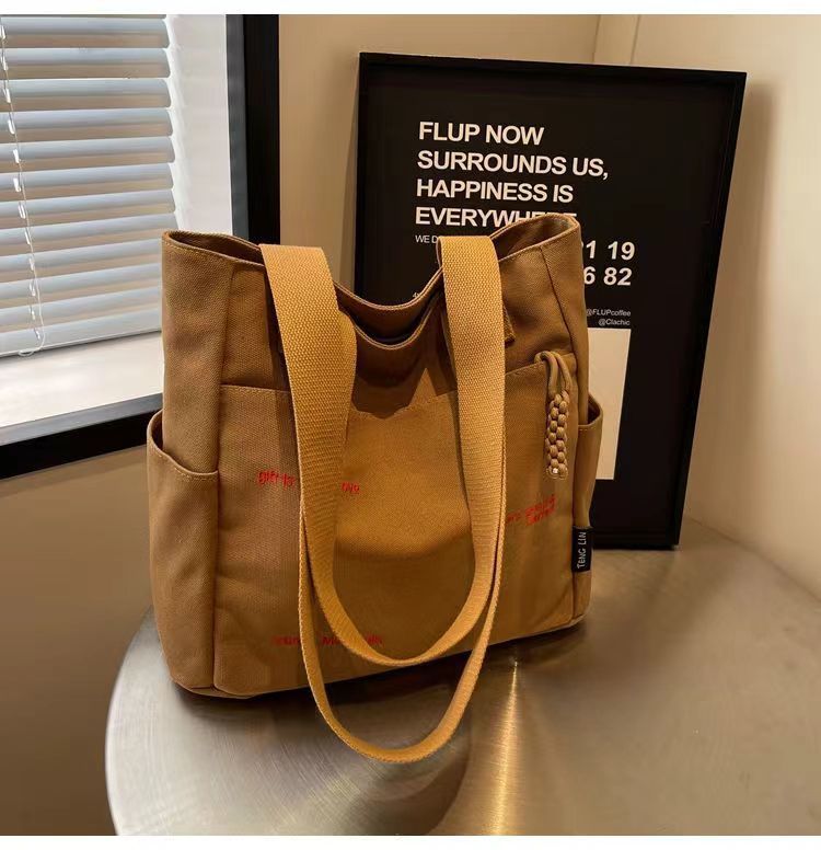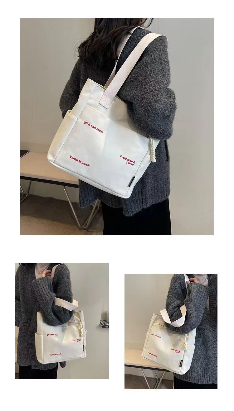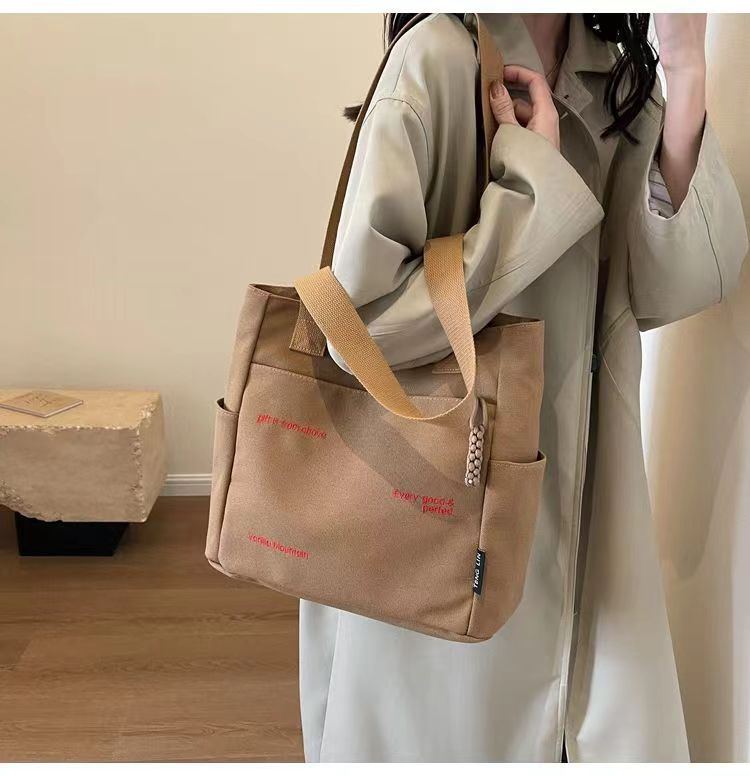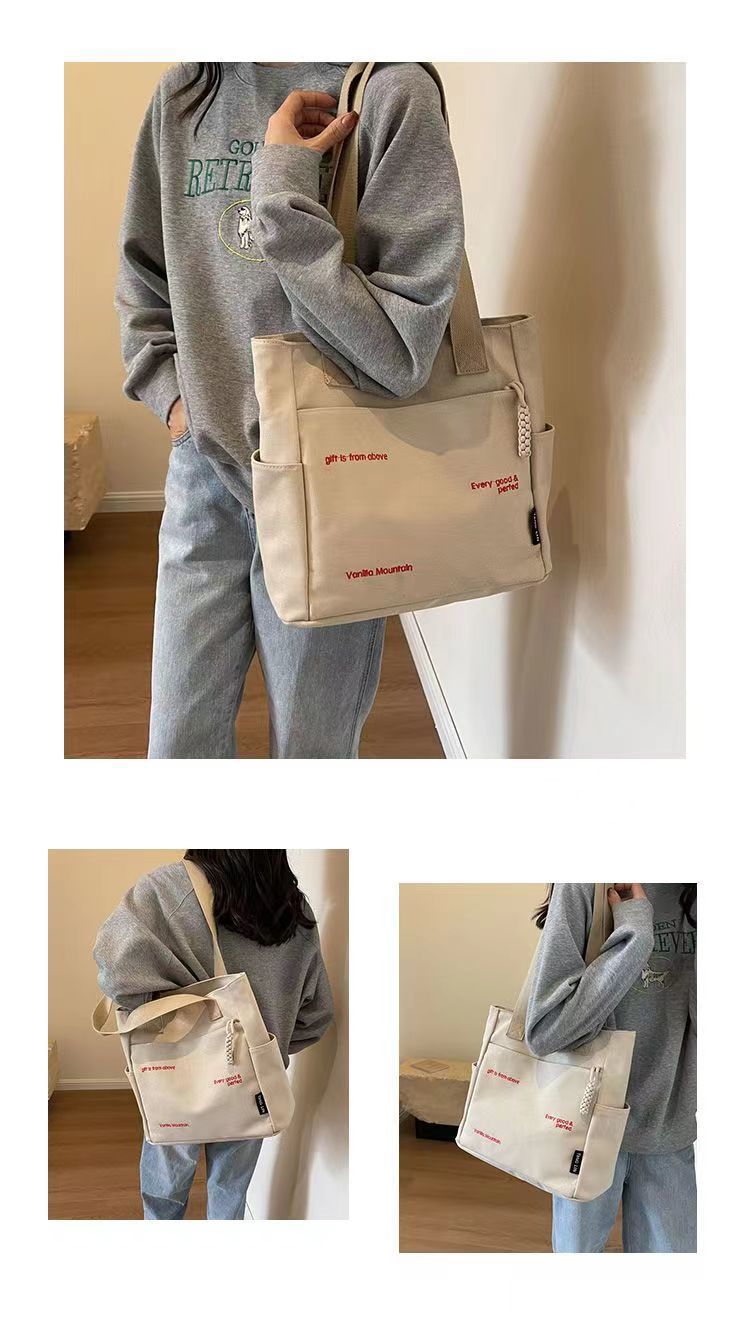 Bolsa de mano ligera para mujeres en clase de hombro único bolso de lienzo con cremallera de estilo coreano