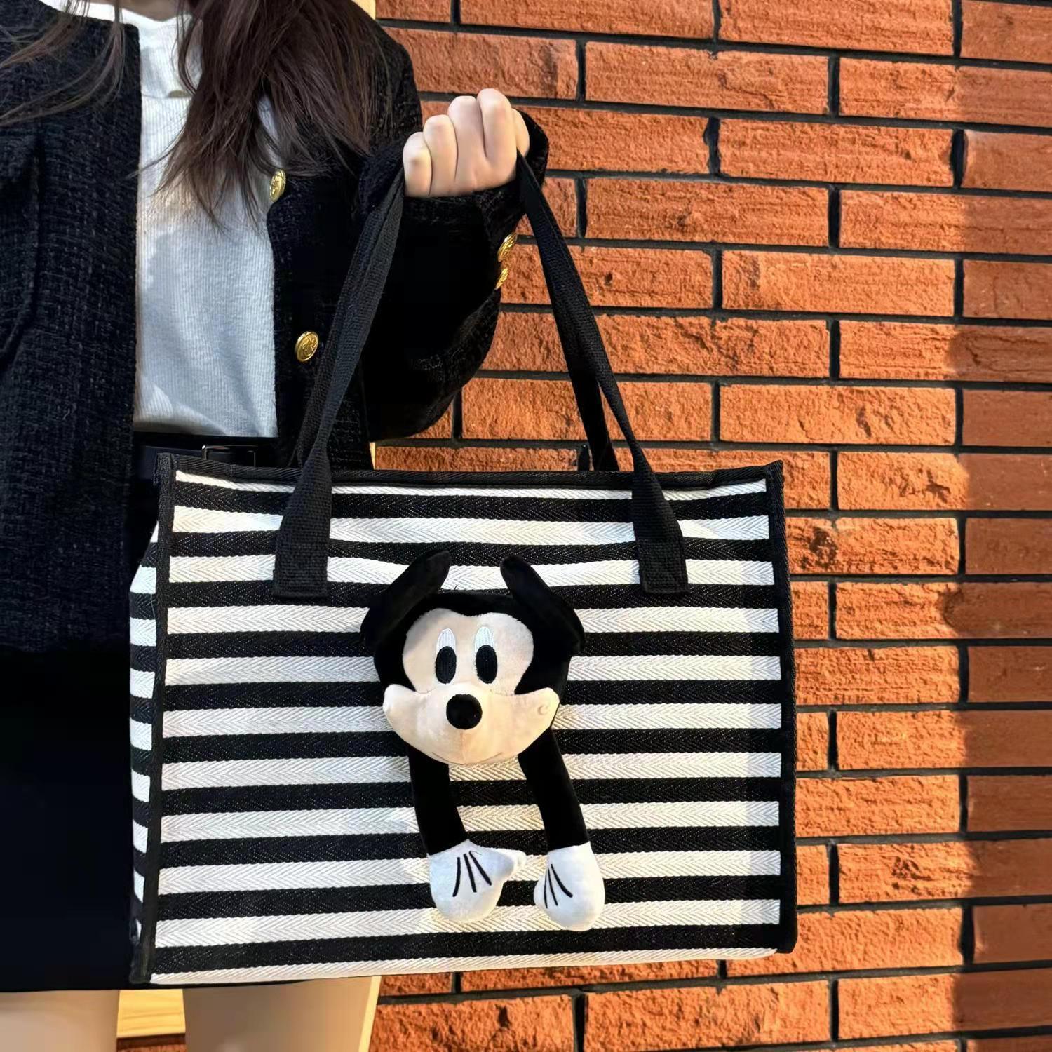 Cute lienzo a rayas de dibujos animados de gran capacidad tote mommy viaje viaje de viaje bolsa de compras muñeca de peluche bolso de hombro