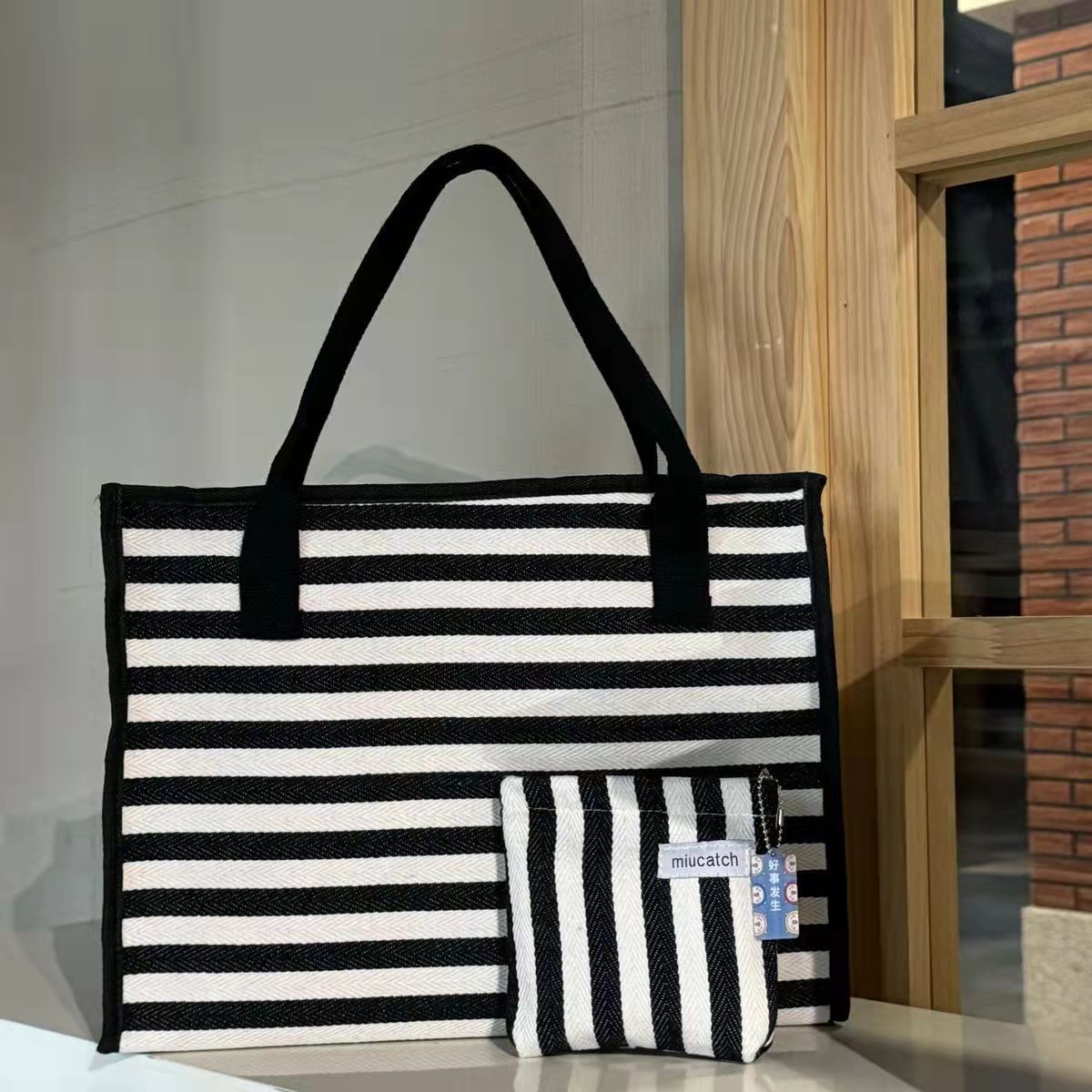 | Color | Bolso grande con rayas horizontales negras [bolso único], bolso grande con rayas horizontales de Mitch negras + colgante de mitch, bolso de maquillaje con rayas negras pequeñas |