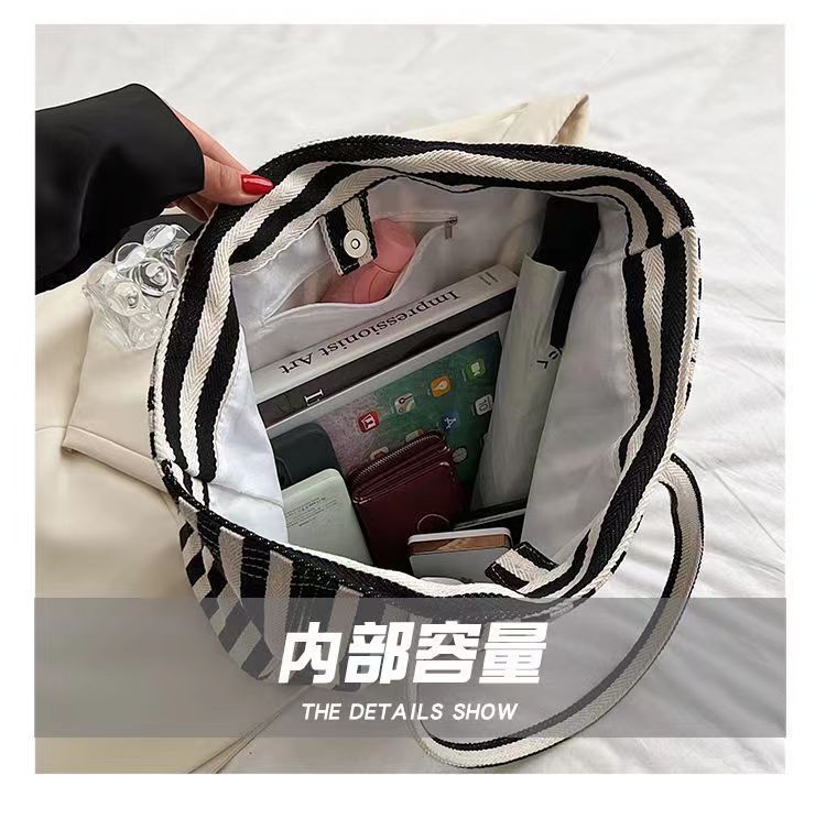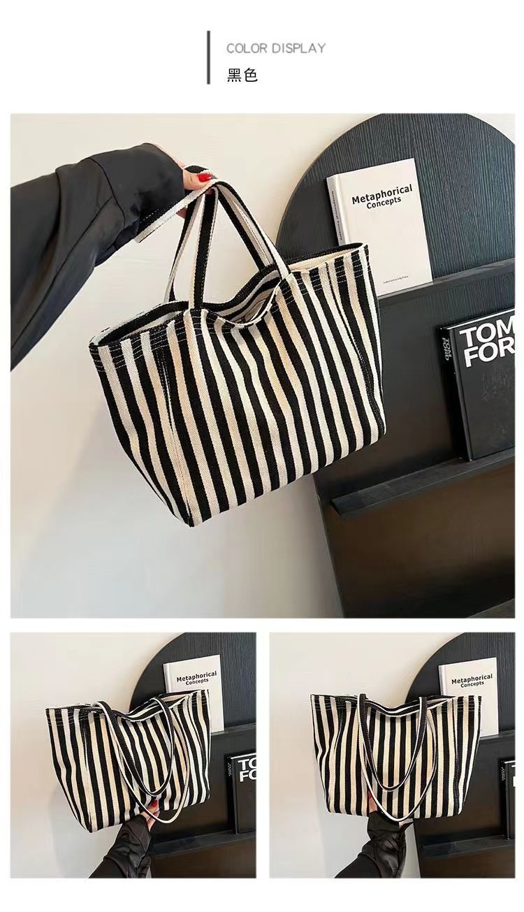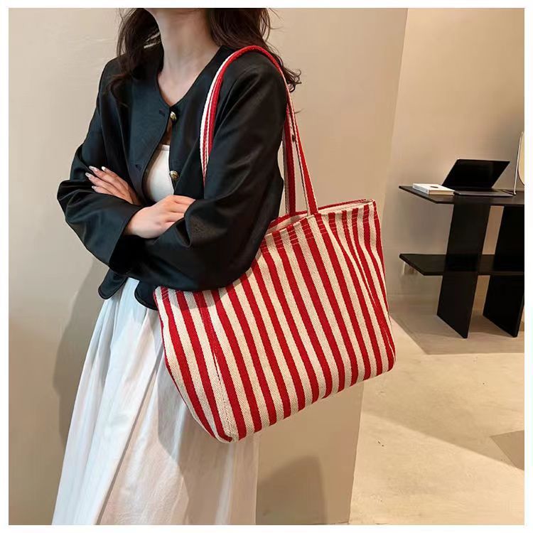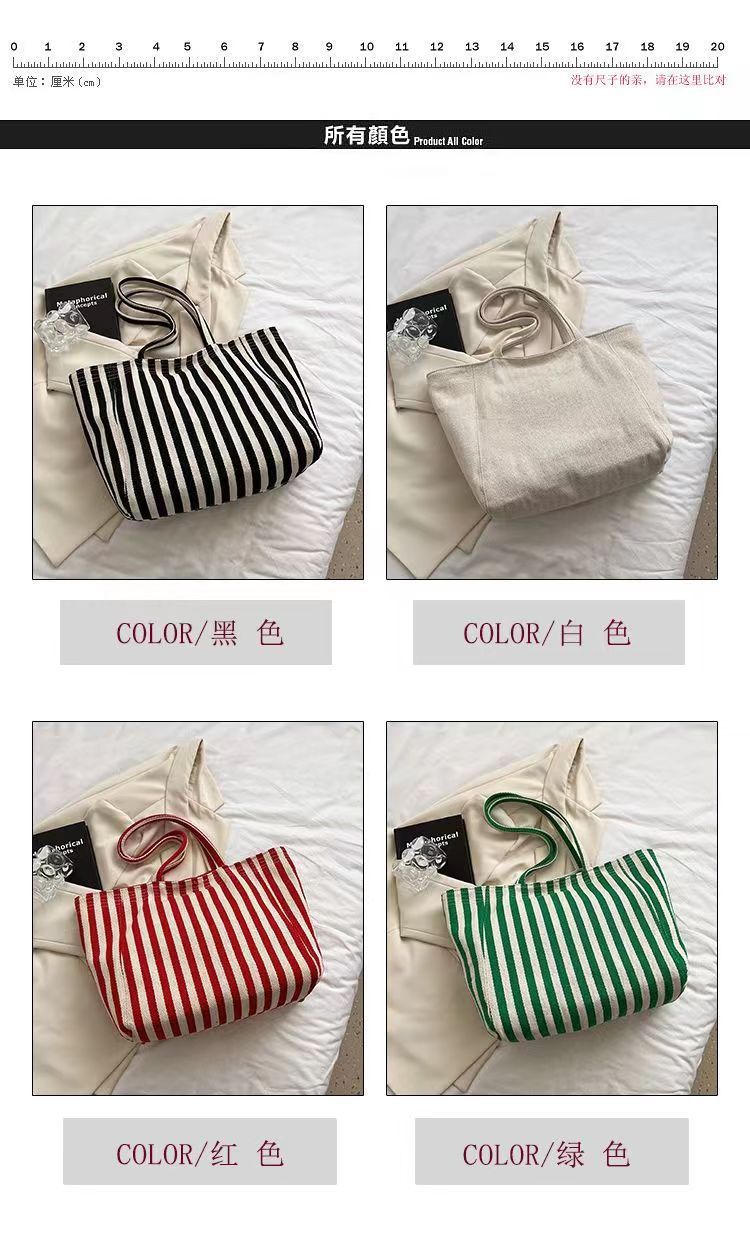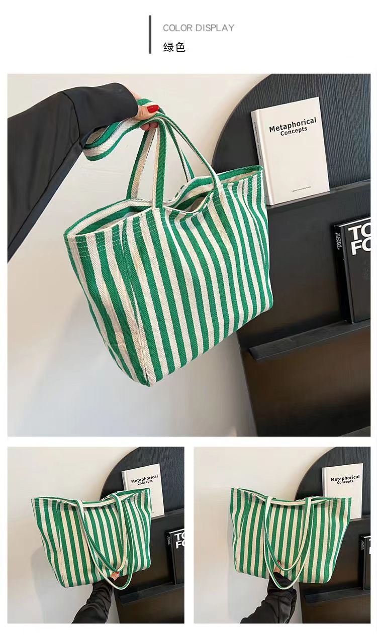 Pequeña bolsa de lona a rayas frescas de hombro para mujeres, bolsas escolares de clase de gran capacidad, bolsas de compras japonesas y coreanas, bolsas especiales.