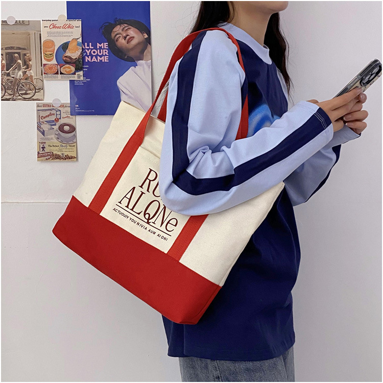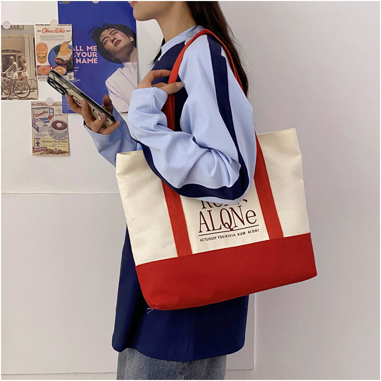 Bolsas de lona creativas de gran capacidad bolsas de lona portátiles para mujeres ocio versátil estudiantes lindos bolsas de compras simples