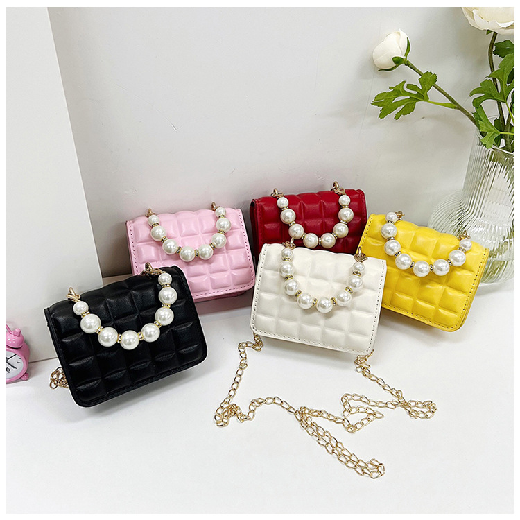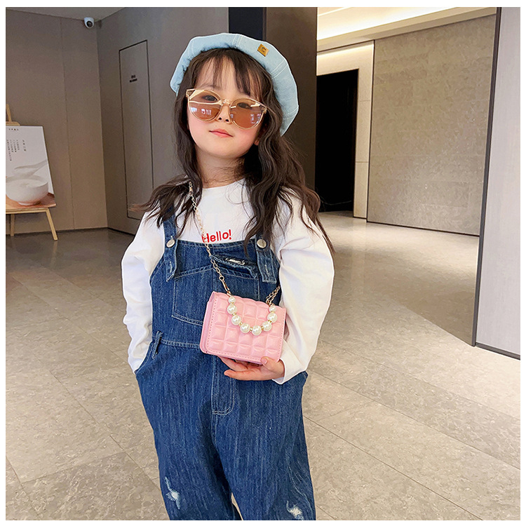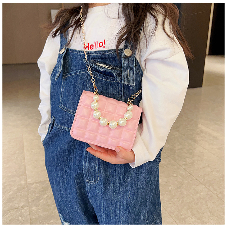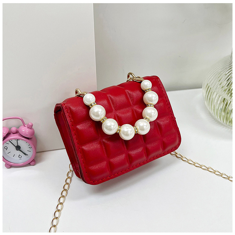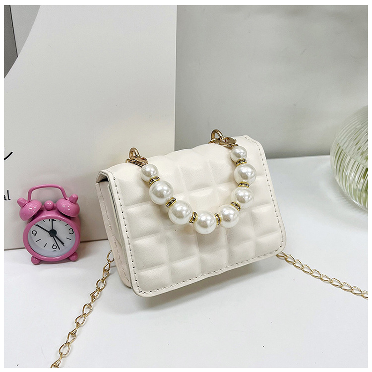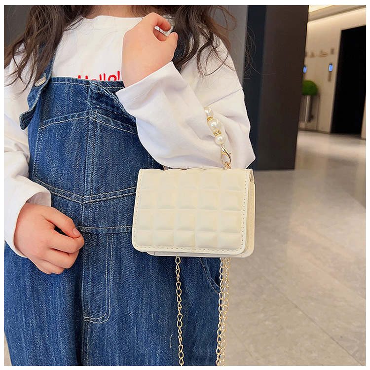 Bolso de cadena de perlas de indentación de tela escocesa de moda de este año mini bolso de mensajero de hombro de cadena de estilo occidental bolso de los niños